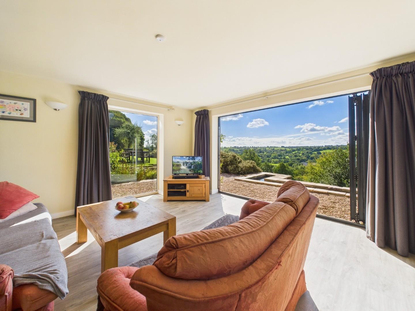 The living area features a full-length window to the side aspect, with double patio doors adjacent, as well as triple patio doors to the front, allowing for plenty of natural light and easy access to the outdoor spaces.