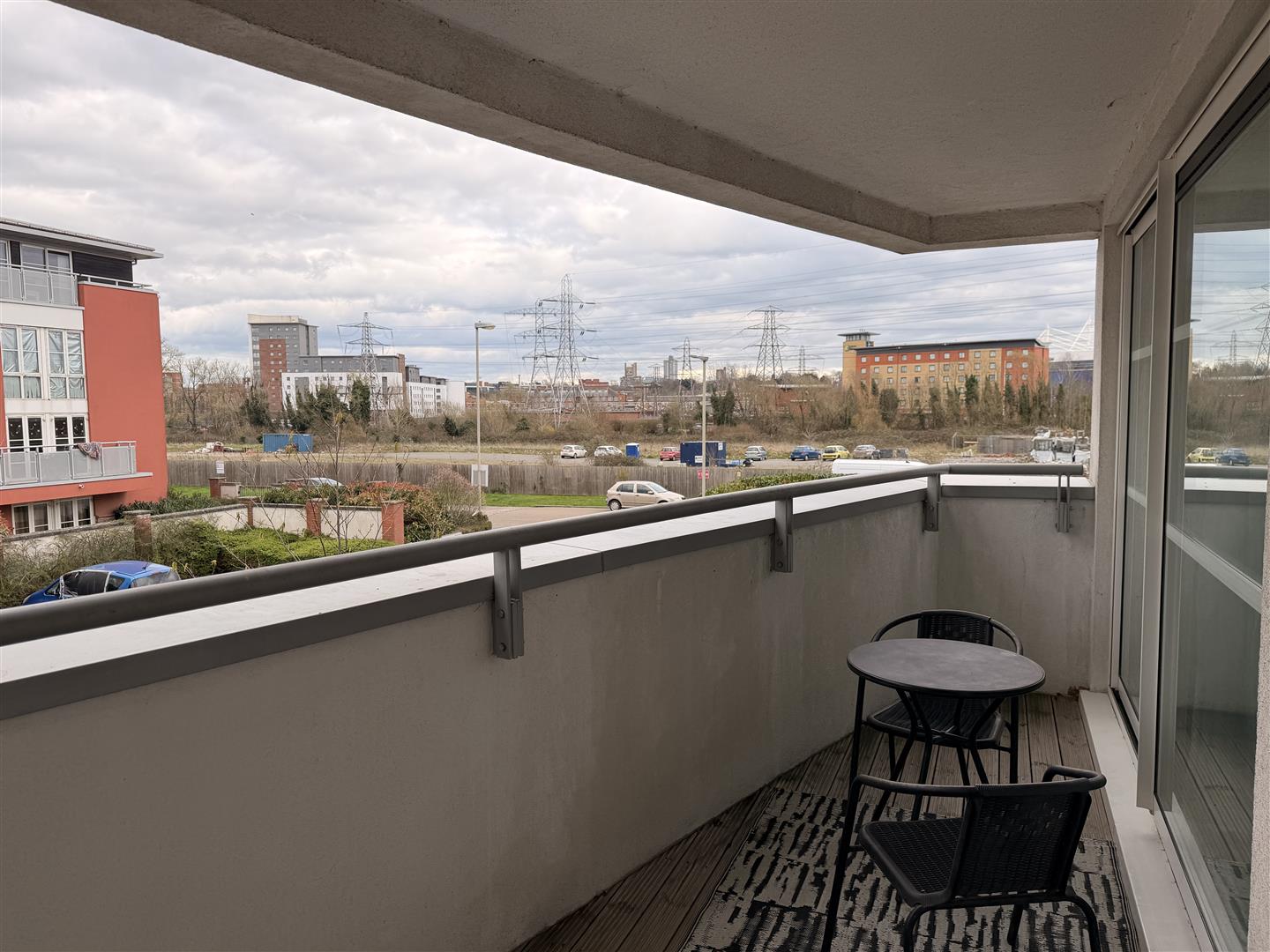 Balcony & Parking - Large Balcony Accessed via bedroom one and lounge, overlooking the King Power Football Stadium.
