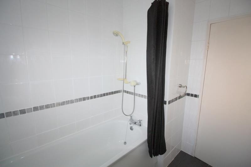 Bathroom - Double glazed window, radiator, tiled walls and floor, three piece bathroom suite comprises of bath with shower over, low level w.c. sink, shower curtain and rail.