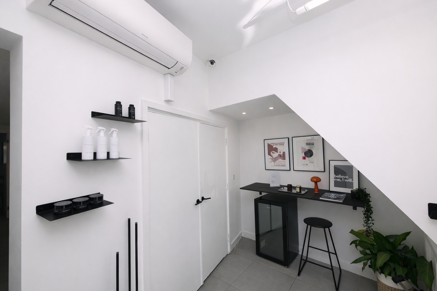 The salon boasts a contemporary and inviting aesthetic, having been recently decorated to a high standard.