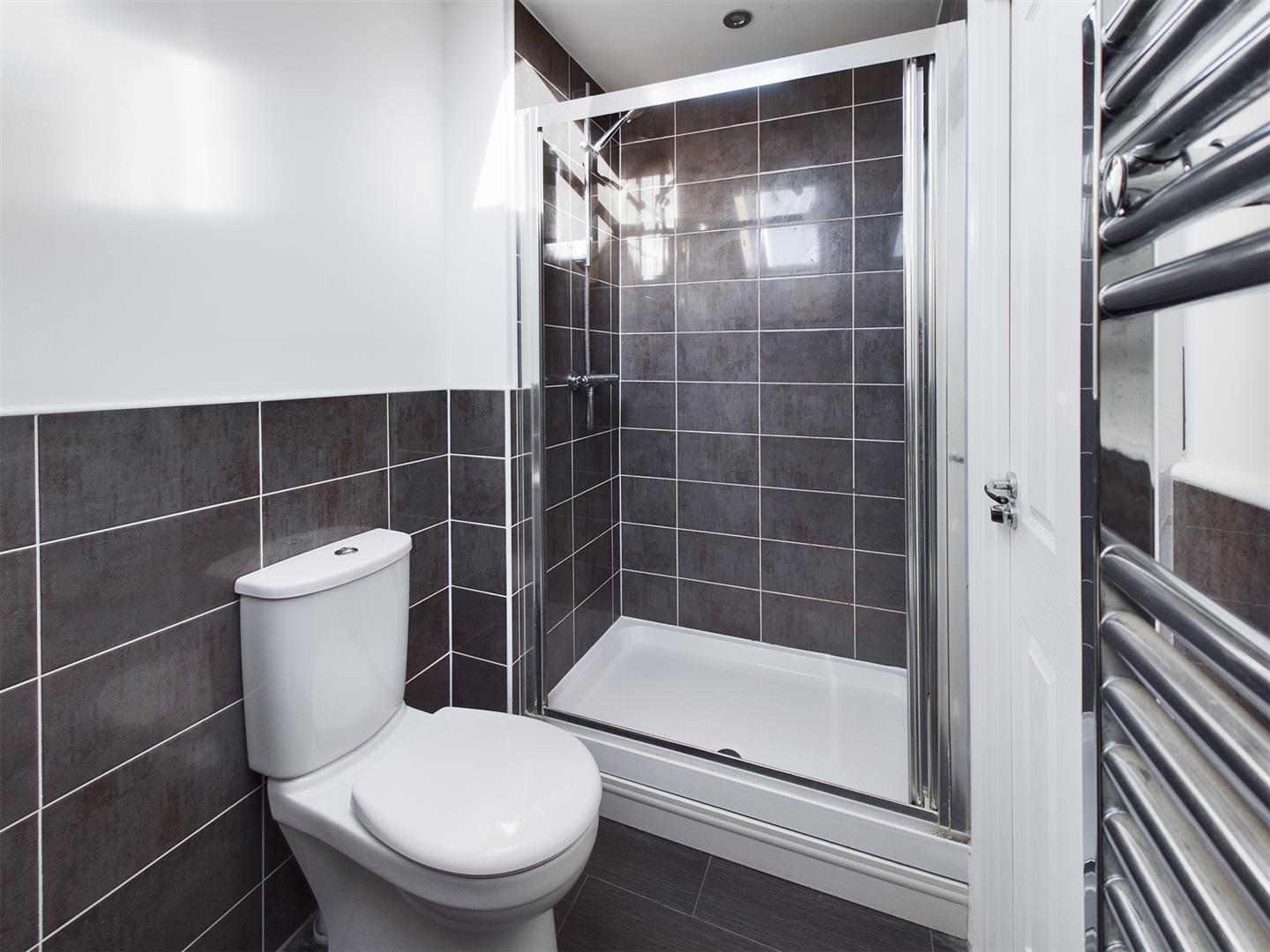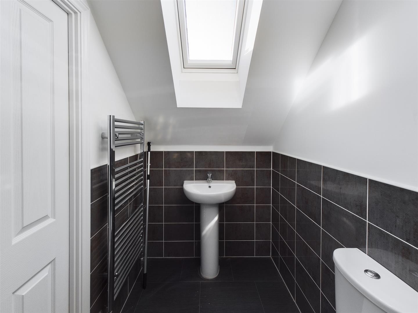 2.61 x 1.39 (8'6" x 4'6") - Velux window, fully tiled walk in shower, sink on pedestal and low flush WC.