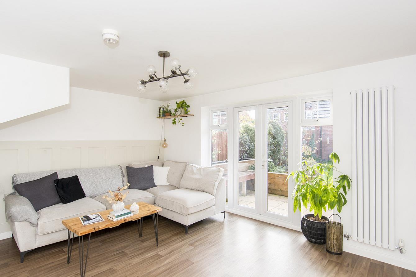 Lounge/Diner - 4.72m x 4.47m (15'6" x 14'8") - Double-glazed French doors opening out to the rear garden. Two double-glazed picture windows. Further double-glazed window to the side elevation. Fitted open boxed shelving and storage cabinets. Relief wall panelling. Vertical radiator. Television point. Understairs storage cupboard.