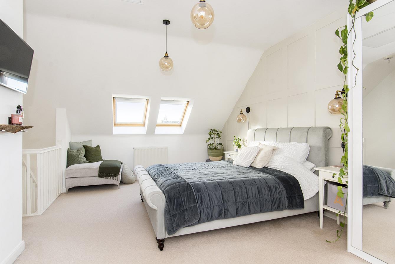 Master Bedroom - 5.97m x 3.43m (19'7" x 11'3") - Timber balustrade. Two double-glazed velux windows. Relief wall panelling. Two radiators. Fitted wardrobes. Television point. Access to loft space. Door to en-suite shower room.
