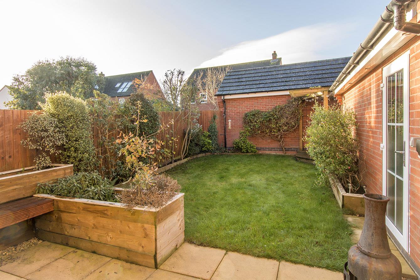 Outside - The rear garden is laid mainly to lawn with some raised beds and decked fitted bench. Further decked patio and paved patio. The rear garden is enclosed by timber lap fencing and is private. Gated pedestrian access to the front. To the side of the property is a tarmacked driveway providing parking for approximately three cars.