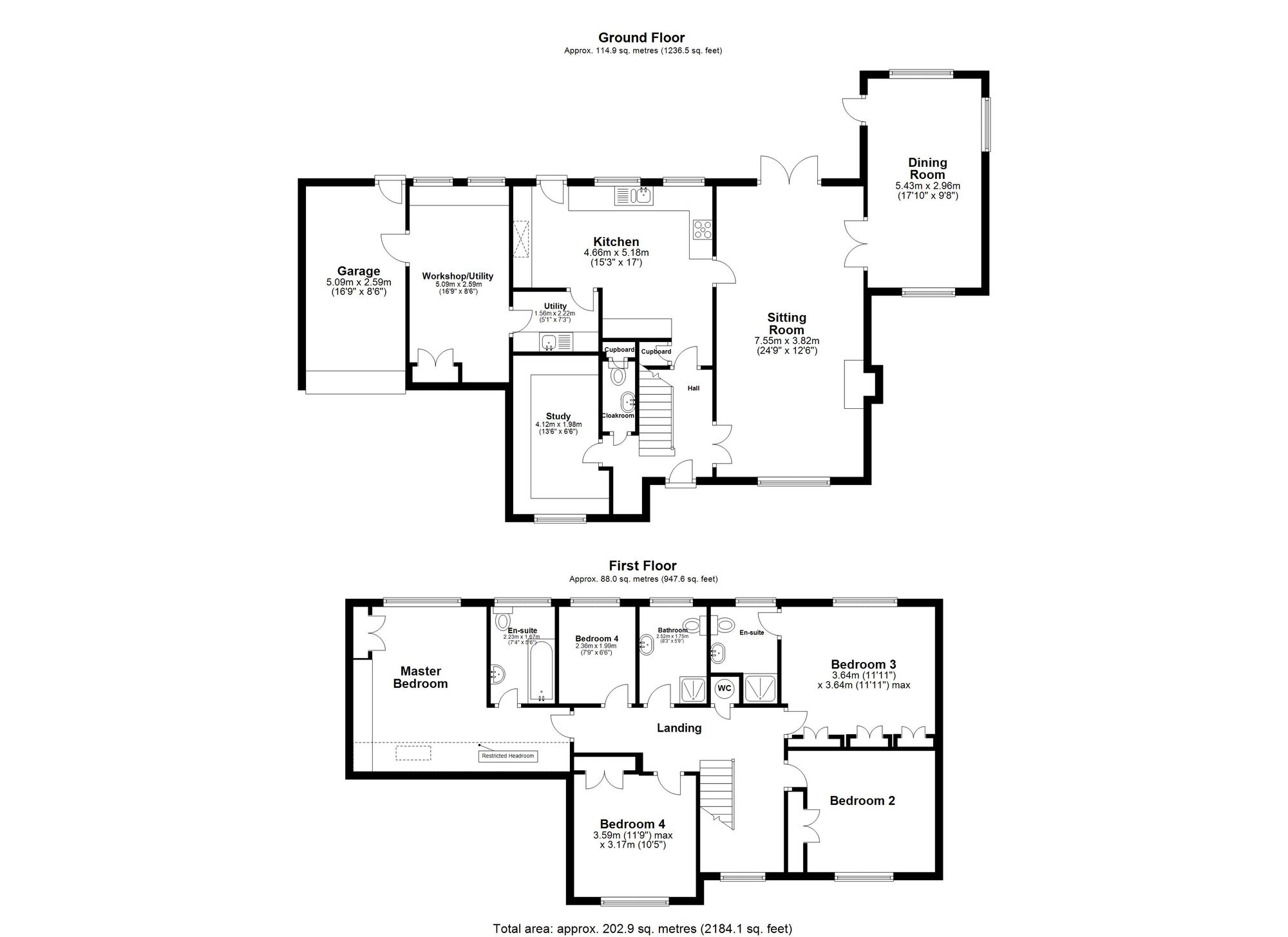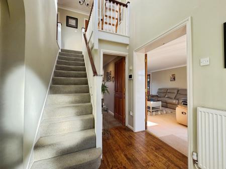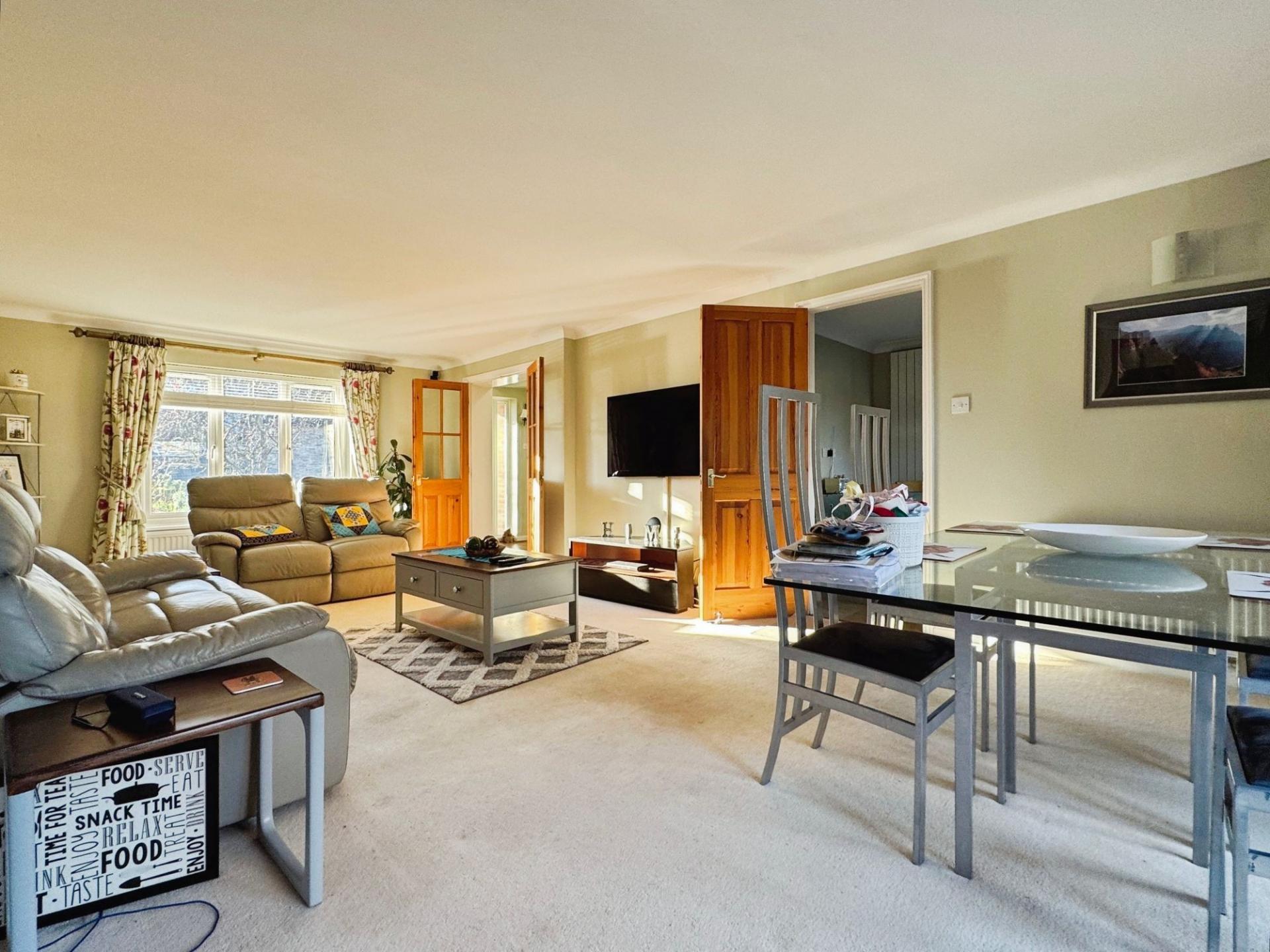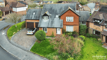 Welcome to Edwards Meadow, an expansive family residence characterised by its brick facade, tiled roof, and double glazed windows. Positioned perfectly, this residence offers versatile living spaces, adaptable to accommodate your unique lifestyle. Upon entry, the capacious hallway sets the stage, granting access to all primary rooms. The inviting sitting room features a focal wood-burner stove, ample natural light, and French doors leading to the garden, ideal for hosting guests. Adjacent lies the dining room, a generously proportioned space bathed in sunlight, courtesy of a later extension to the property. The heart of the home, the sizable kitchen/breakfast room, is equipped with integrated appliances and seamlessly connects to both a utility room and workshop, with convenient garage access. For those working remotely, the study with its wooden flooring provides an ideal workspace, while a downstairs WC completes the ground floor amenities. Ascending to the first floor, a spacious landing serves as a gateway to five bedrooms, three of which offer picturesque rear views. The primary bedroom features abundant built-in wardrobes and an en-suite bathroom with bath and overhead shower, while the remaining bedrooms boast similar wardrobe provisions, with the second bedroom also offering its own en-suite.