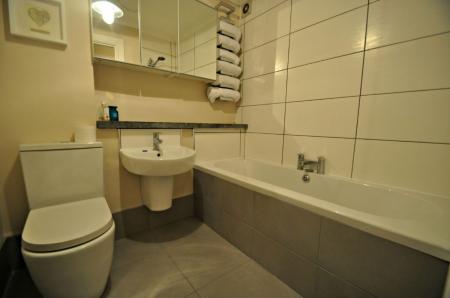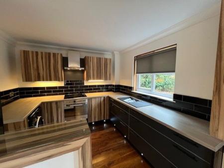 With double glazing and electric heating the apartment is beautifully maintained with a hallway leading to most apartments. The lounge has a hardwood floor and additional storage and is part one plan to a contemporary fitted kitchen with built in oven and hob as well as a washing machine.