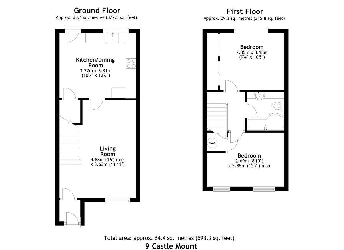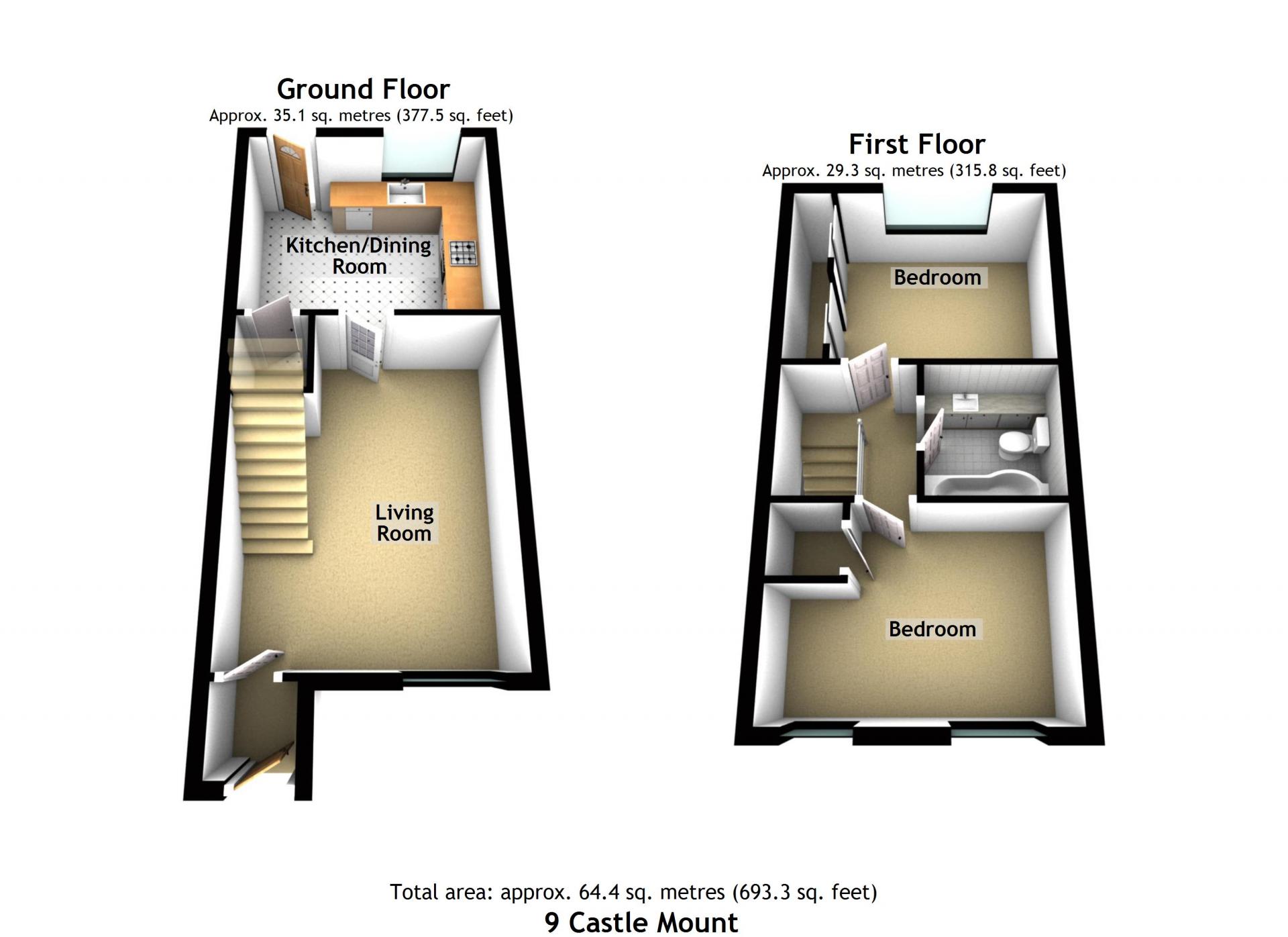 Upstairs there are two bedrooms together with a smart three piece white bathroom suite.