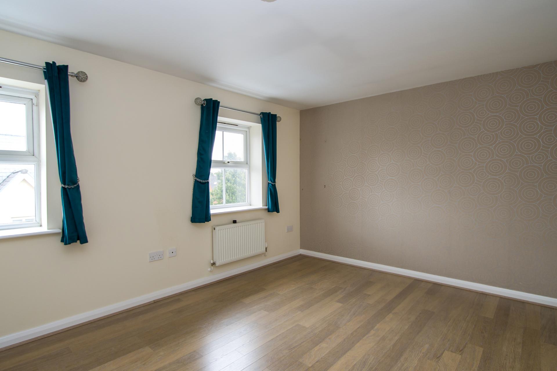 Master bedroom to the front of the property. Built in wardrobes. Two uPVC double glazed windows to the front with fitted Roman blinds. Wood effect flooring. Power points. Double central heating radiator. Television point. Door to the en-suite.