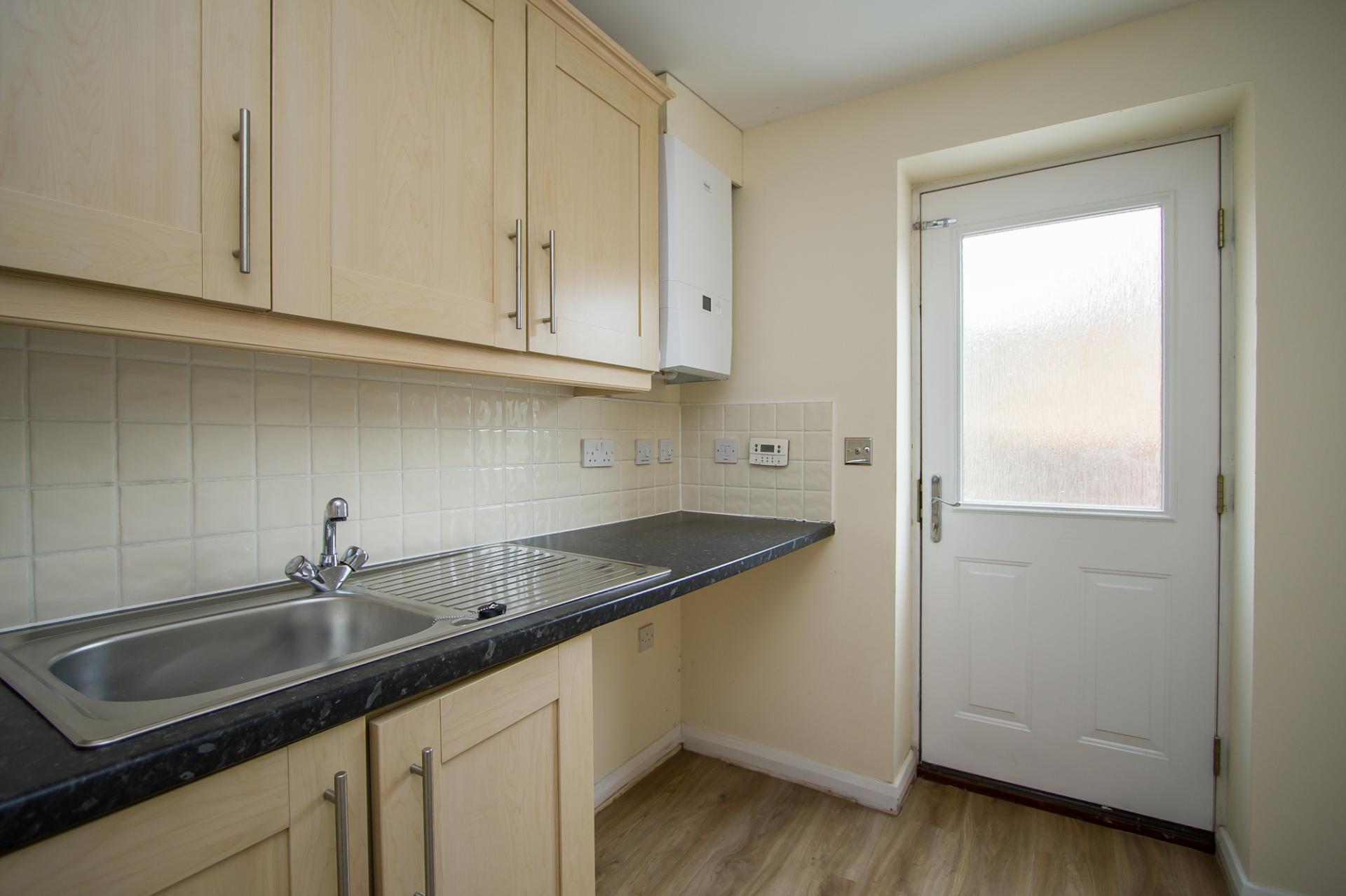 A useful room the also accesses the rear garden through a glazed panel door. Fitted wall and base units. Plumbing for washing machine. Gas central heating boiler. Single bowl and drainer stainless steel sink unit.