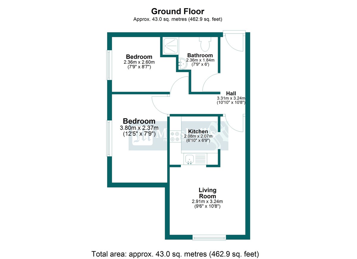 This apartment features two bedrooms decorated in neutral tones. The lounge includes an exposed granite wall, adding character to the space. The kitchen is equipped with a variety of wall and base units, along with a built-in oven and hob. a bathroom includes a low-level WC, a hand basin, and a bath with a shower overhead. Overall, this property is in good condition, and an internal viewing is recommended.