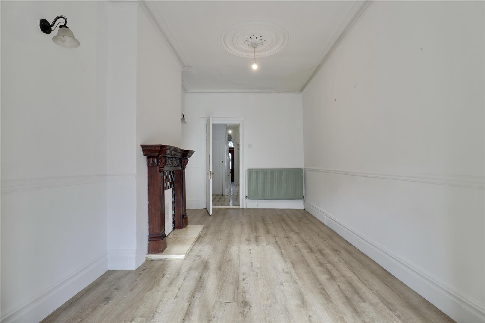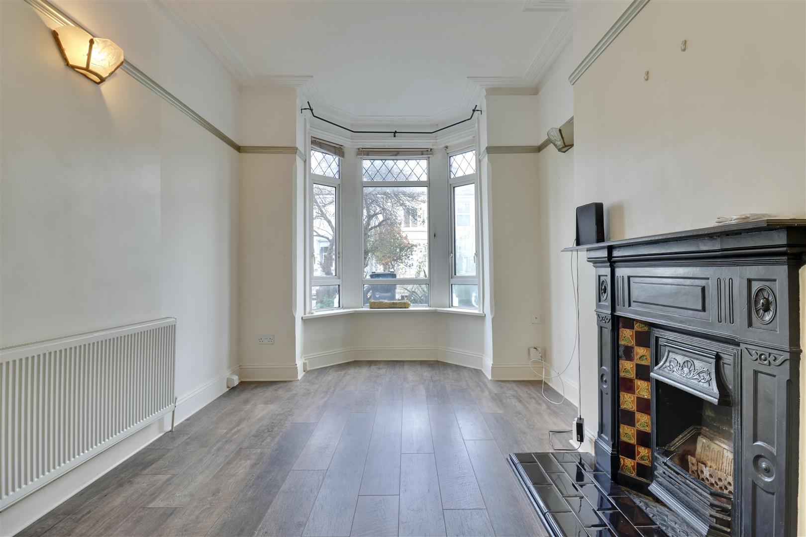 Upon entering the property, you are welcomed into a spacious reception room located to the left. This inviting space boasts a traditional fireplace, a stunning bay window that floods the room with natural light, and elegant wooden flooring.