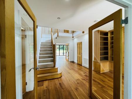 The epitome of a family home, the house sits on a large plot and comprises a double height reception hallway with library, stunning kitchen/diner with bi-fold doors and underfloor heating, living room with log burning stove, separate utility room leading to gym/games room, five well proportioned double bedrooms - two with ensuite - and a family bathroom.