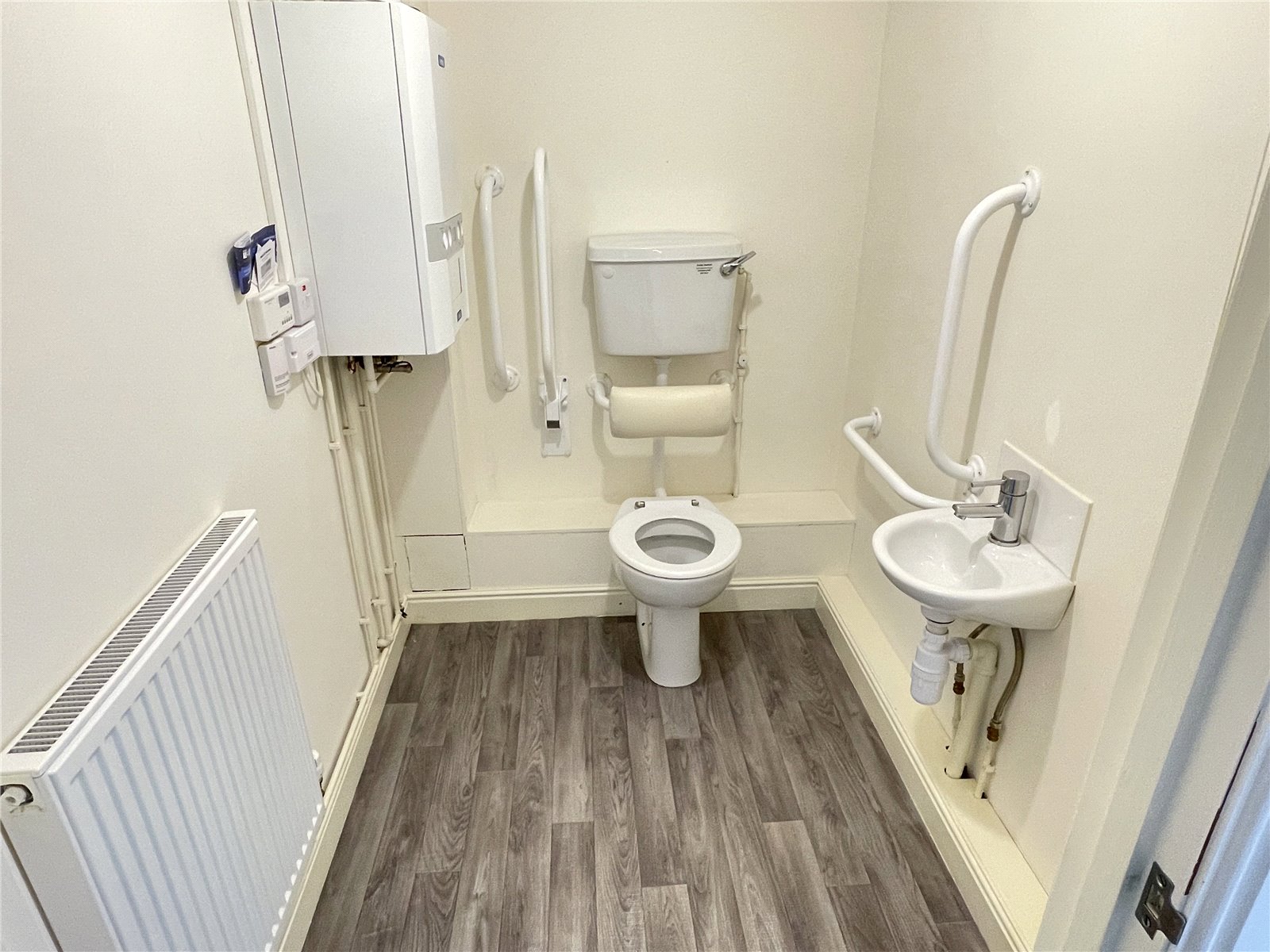 Disabled WC with washbasin, gas central heating boiler