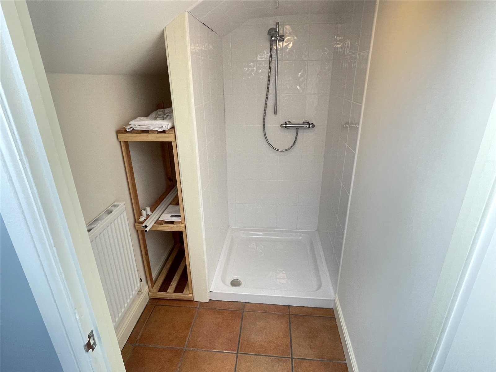 Shower Room with shower cubicle, tiled floor.