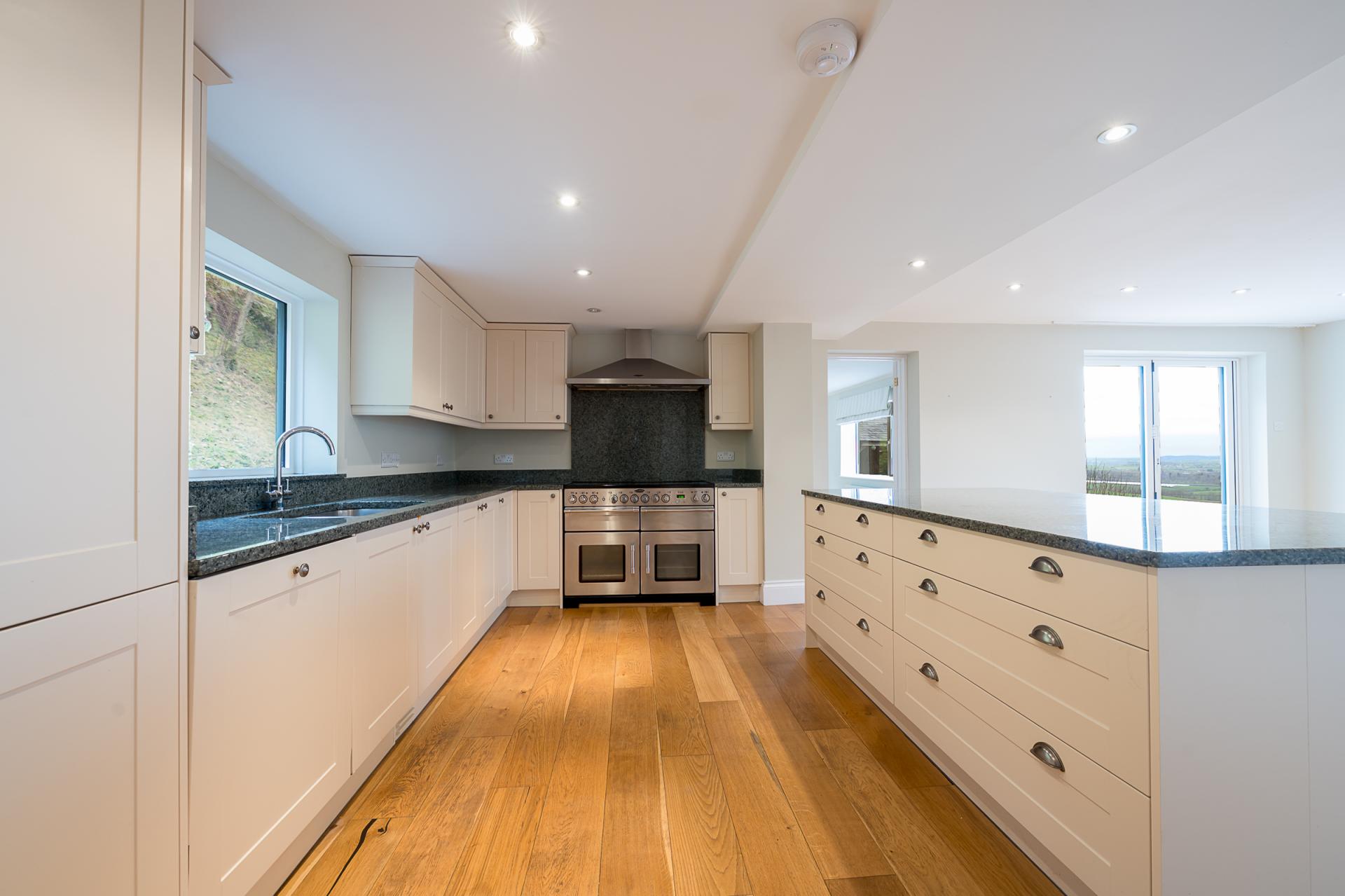 The kitchen comprises integrated units with granite worktops, central island with drawers, integrated double fridge freezers, dishwasher and range cooker.