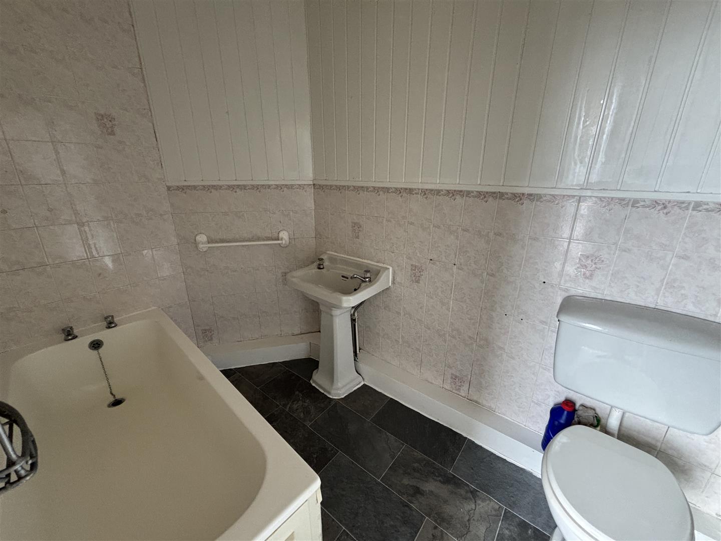 Bathroom - Comprising panel bath, shower cubicle, pedestal sink and low level Wc
