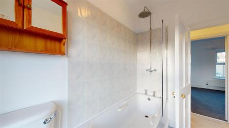 The property offers a bright living room, dining room with built-in storage, and a neutral fitted kitchen with space for appliances and access to the rear garden. Upstairs features two good-sized bedrooms, the master with built-in storage, and bathroom with shower over bath.