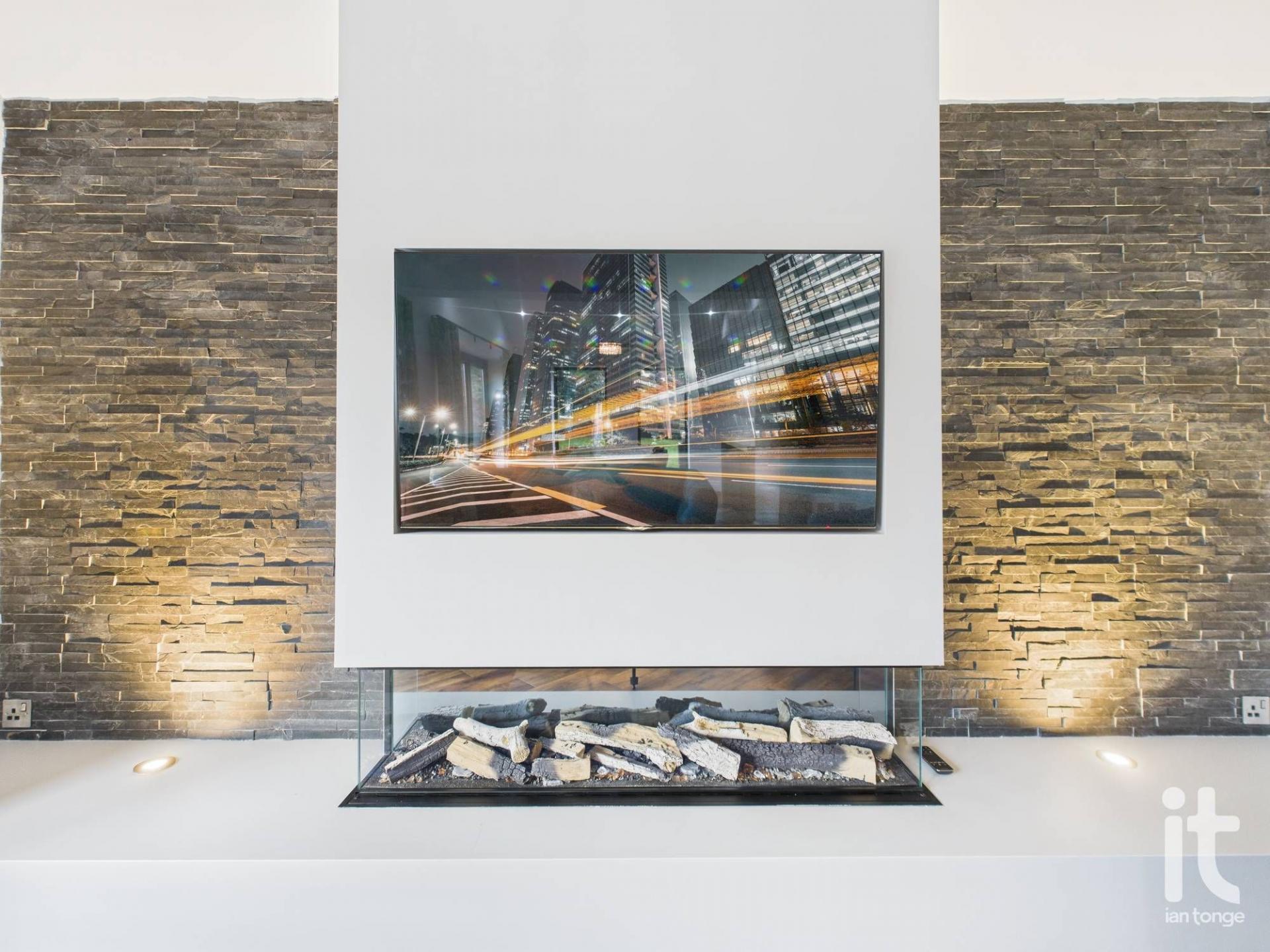 Double glazed bi-folding doors to rear decked area, feature media wall with wall mounted electric fire, underfloor heating.