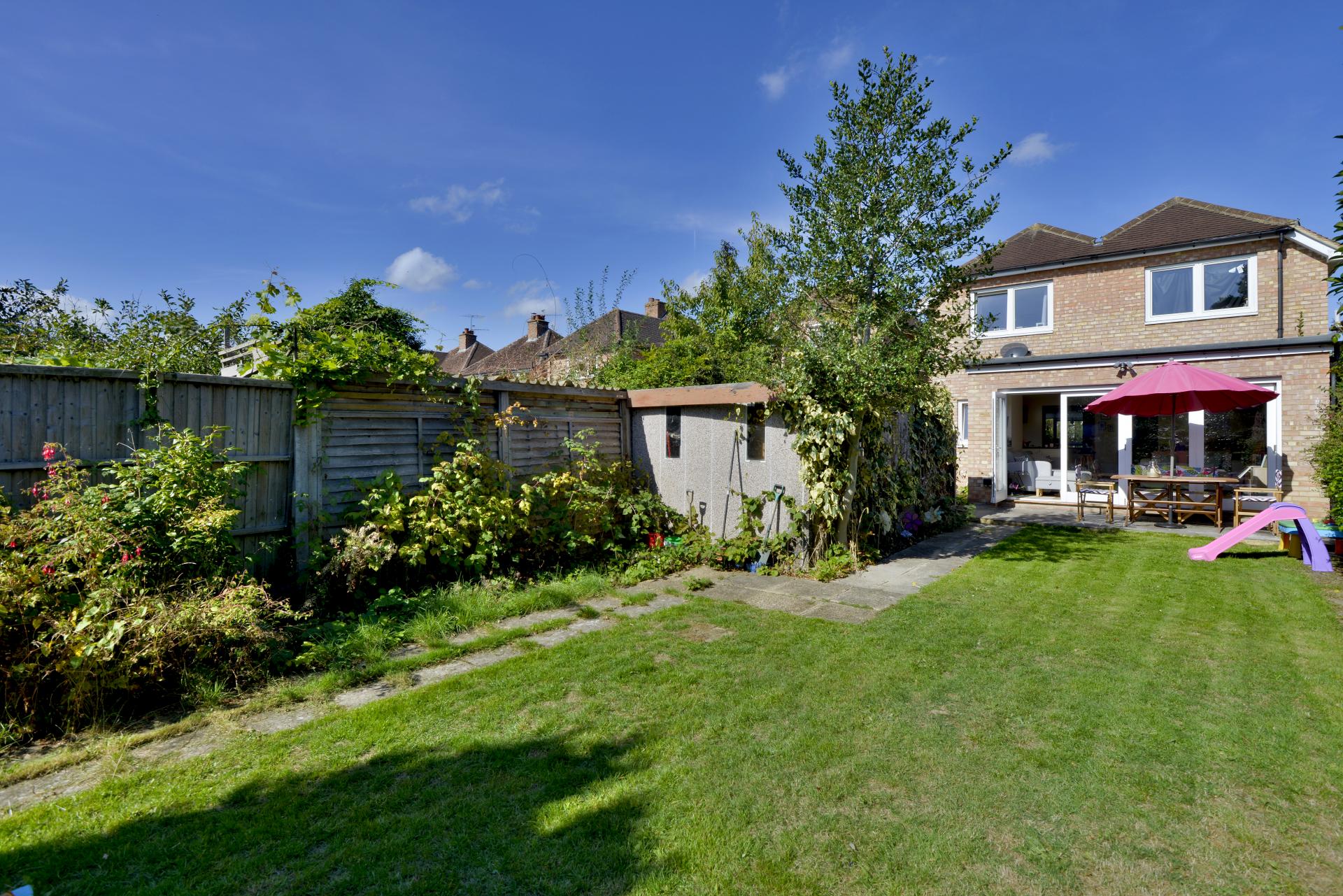 Outside, the property enjoys a good-sized rear garden mainly laid to lawn with a patio area and a large garden store room. To the front, there is a small lawn area and parking for one car.