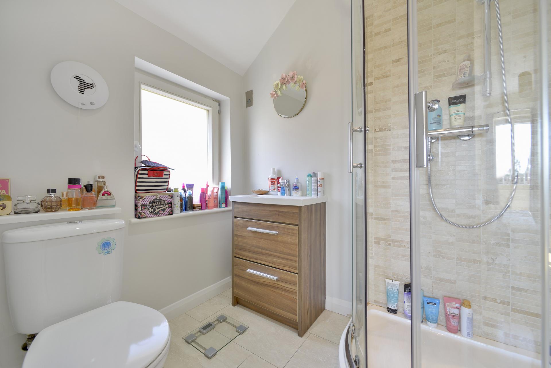 Upstairs offers three double bedrooms, including a principal bedroom with en-suite shower room, and a family bathroom with a separate shower cubicle.