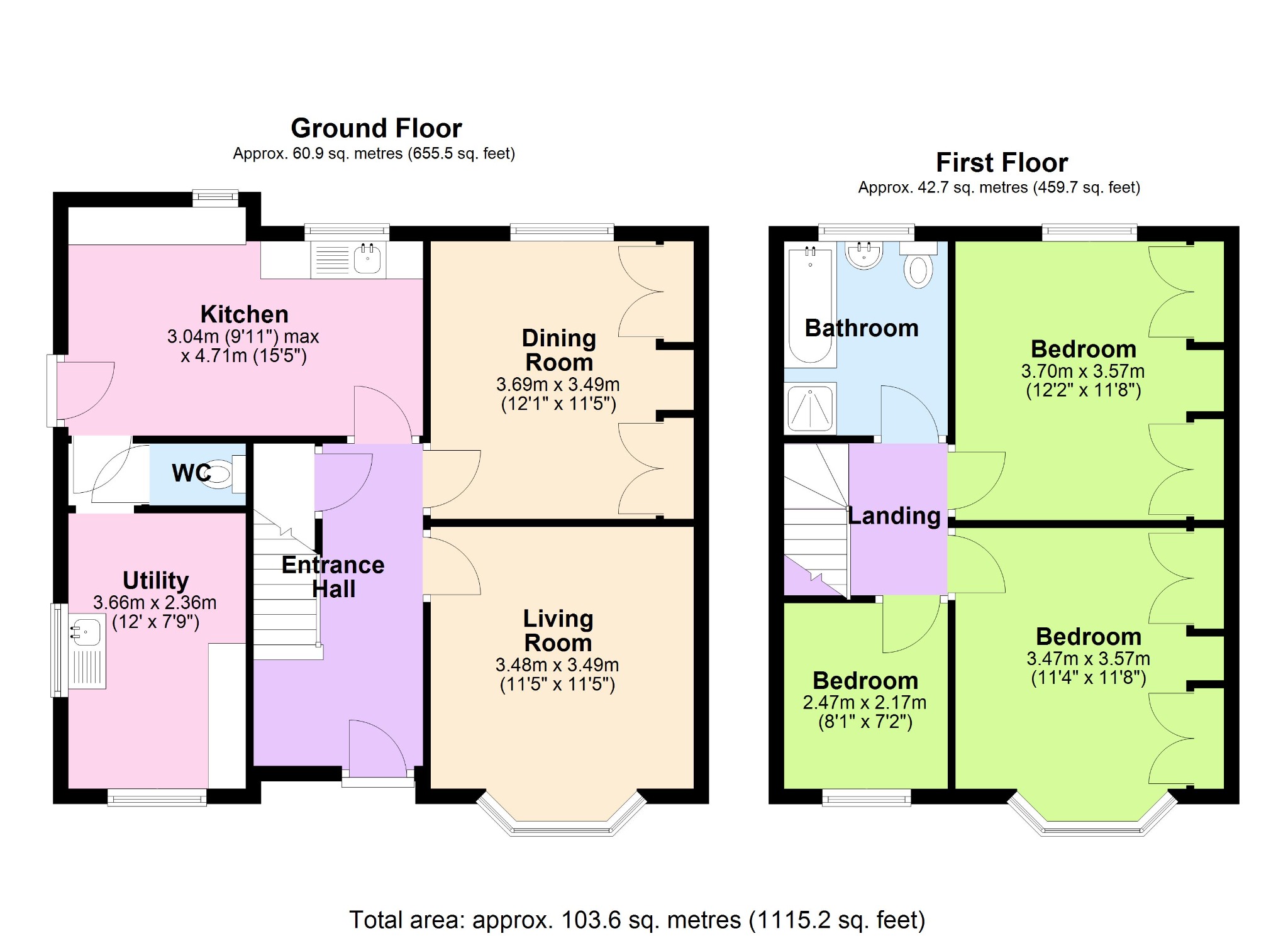 The kitchen is well-sized and practical, with sufficient room for meal preparation and storage. Complementing this space is a convenient utility area, ideal for laundry and additional household needs. A ground-floor WC adds further practicality to the layout.