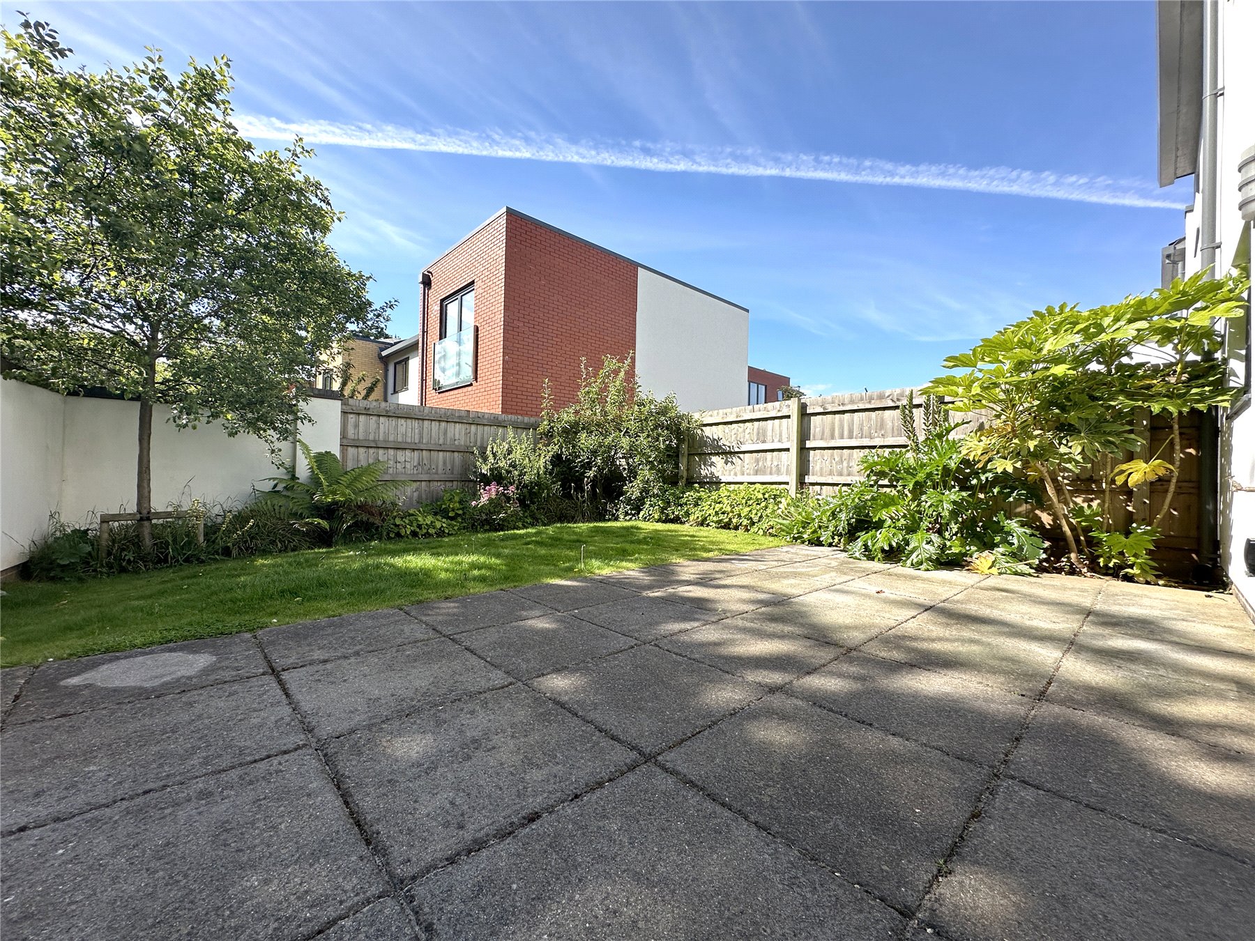 OUTSIDE Mature shrubs, grass and patio an enclosed garden with two power sockets and outside tap. Path leading to garage with electric door and room to store bins.