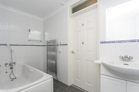 Patio area immediately outside the Living Room which overlooks and leads onto the substantial communal garden. To the front of the property there is also the useful benefit of a Garage en bloc.