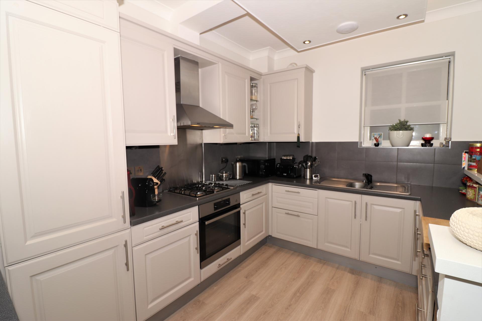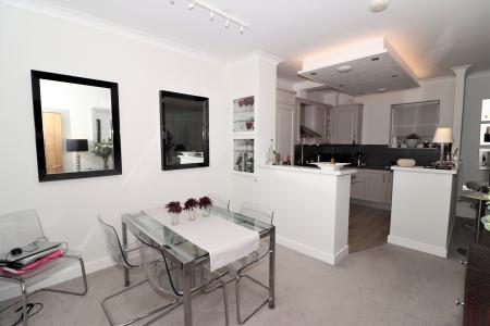 Communal entrance hall leading into the Hallway with 2 build in cupboards for storage. The Family Shower Room comprises of a large shower cubicle with fitted rainfall style showerhead, wall mounted wash hand basin with built in storage, low level W/C, heated towel rail and a cupboard housing the washing machine. The Master Bedroom is a good sized double with plenty of storage with the fitted wardrobes and the Second Bedroom also comes with a fitted wardrobe. The En-Suite Shower Room comprises of a standard sized shower cubicle with fitted rainfall style showerhead, wall mounted wash hand basin with built in storage, low level W/C, heated towel rail. The 'L' shaped Lounge/Kitchen is well proportioned to also incorporate a dining area. The Kitchen comes fitted with plenty of wall and base units for storage, a breakfast bar and integrated appliances including the fridge/freezer, dishwasher, electric oven and 4 ring gas hob with filter hood above along . The Lounge is a generous space with a fitted TV unit with plenty of shelf space and plenty of light coming through the bay style windows to the front of the property.