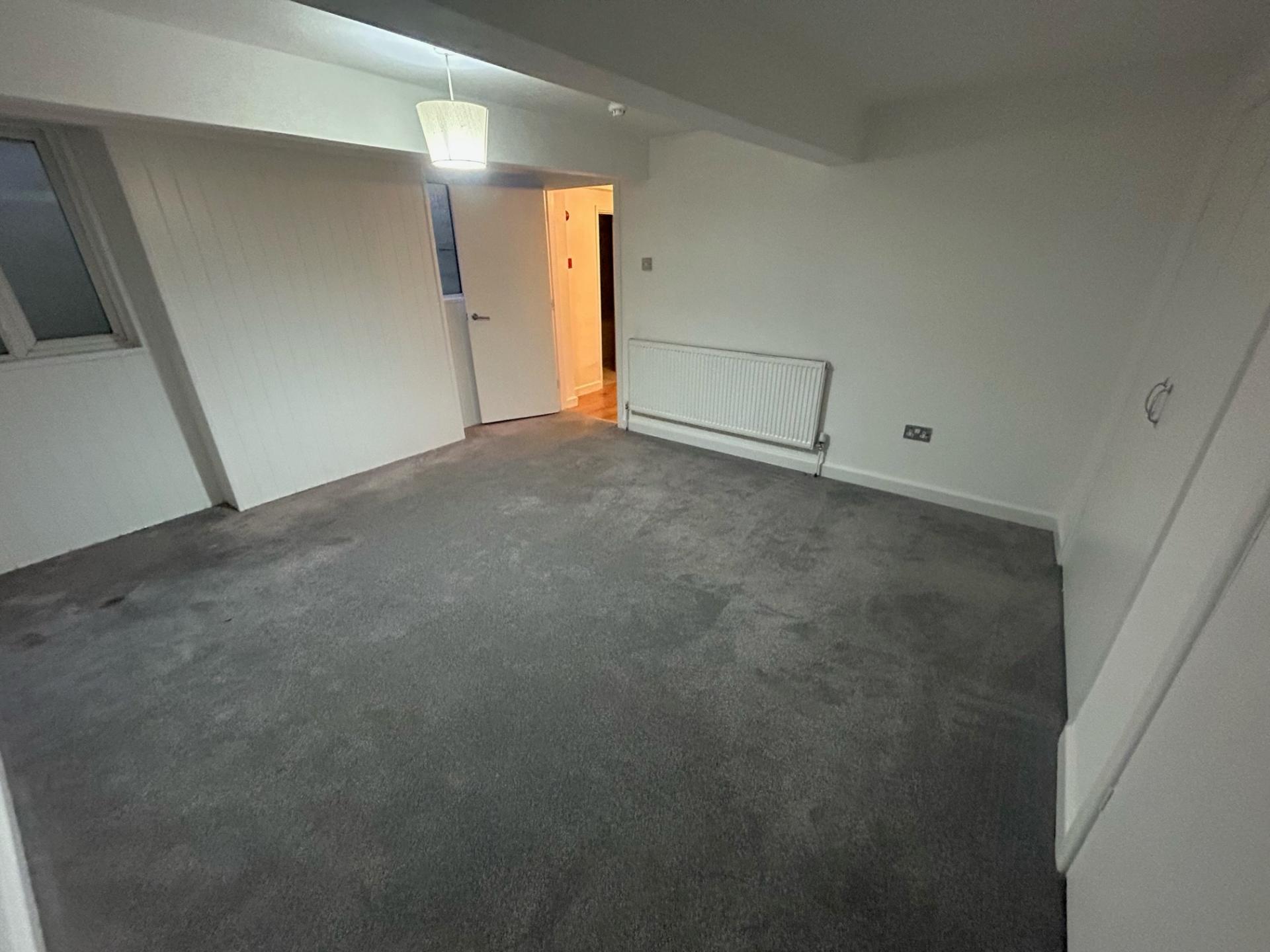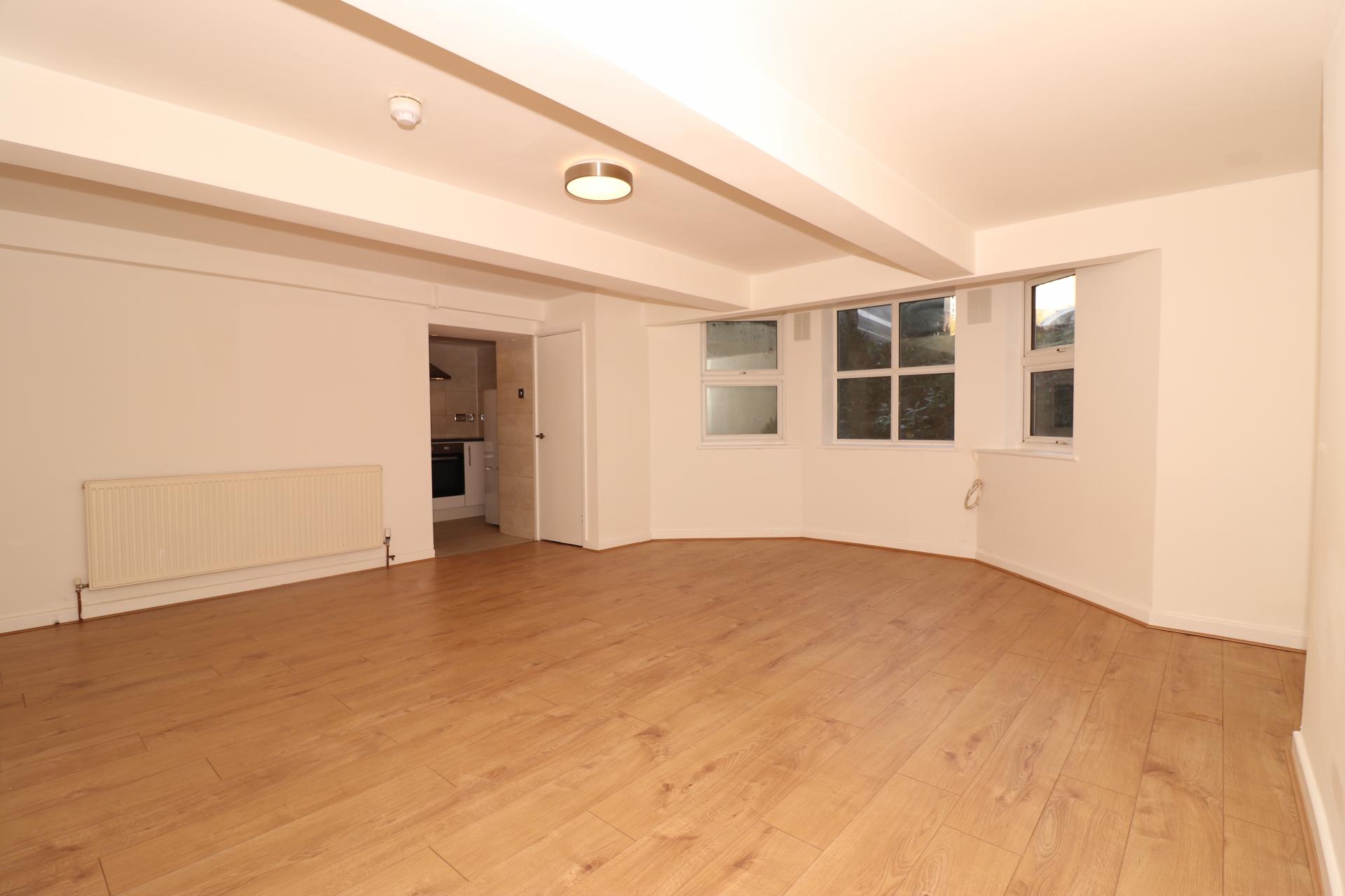 Communal Entrance Hall way with stairs down and returning on themselves, leading to Entrance Hall with understairs cupboard, wall mounted entry phone, doors to Large Bedroom with two large deep, double wardrobes, with fitted coat rails and further shelving. Bathroom with tiled floor, heated towel rail, low level wc, panelled bath with shower attachment over, sink inset to vanity unit with feature tap, wall mounted mirrored cupboard. Spacious Living Room with feature bay window, three sets of double glazed windows to the front and further door leading to a deep storage cupboard with power, The Living Room opens onto the