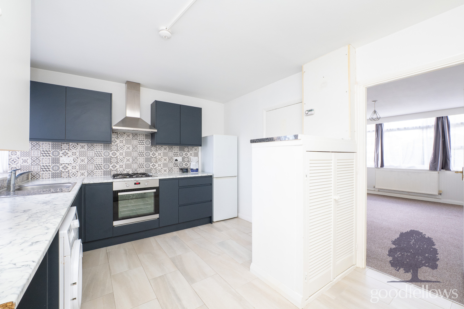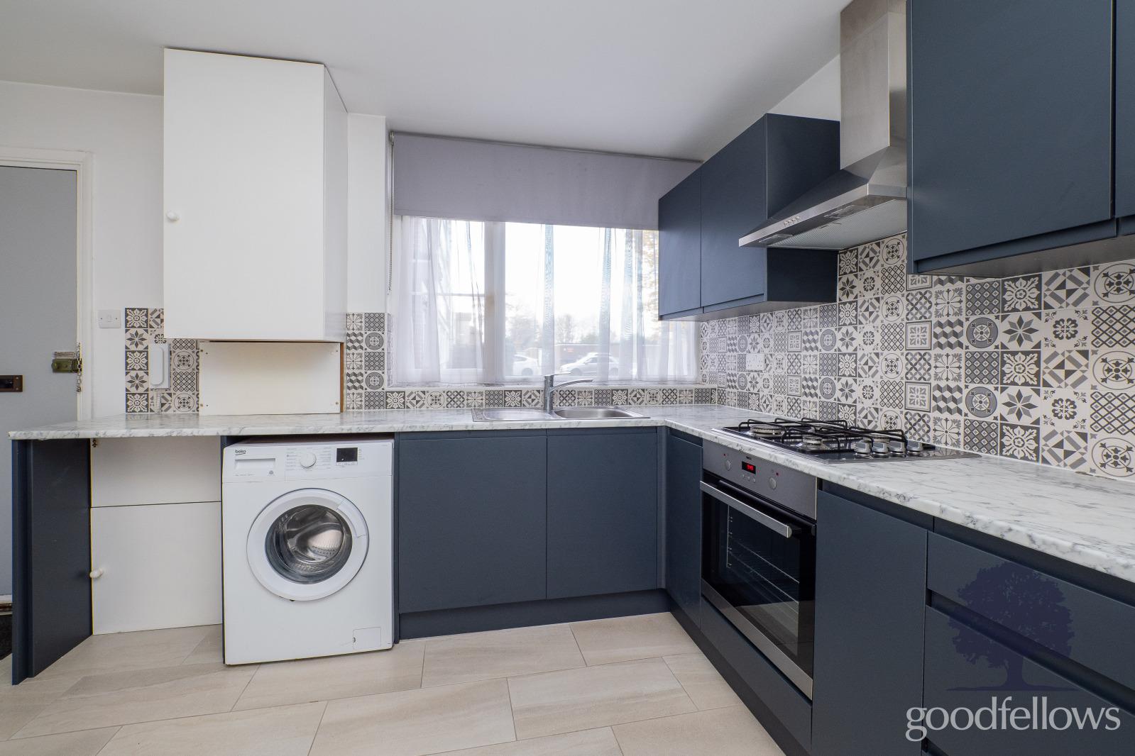 Spacious and bright Ground-floor flat new to the market. Modern kitchen, large living room, and two bedrooms, one large double and the other a small double or office space. Family bathroom with shower over bath.