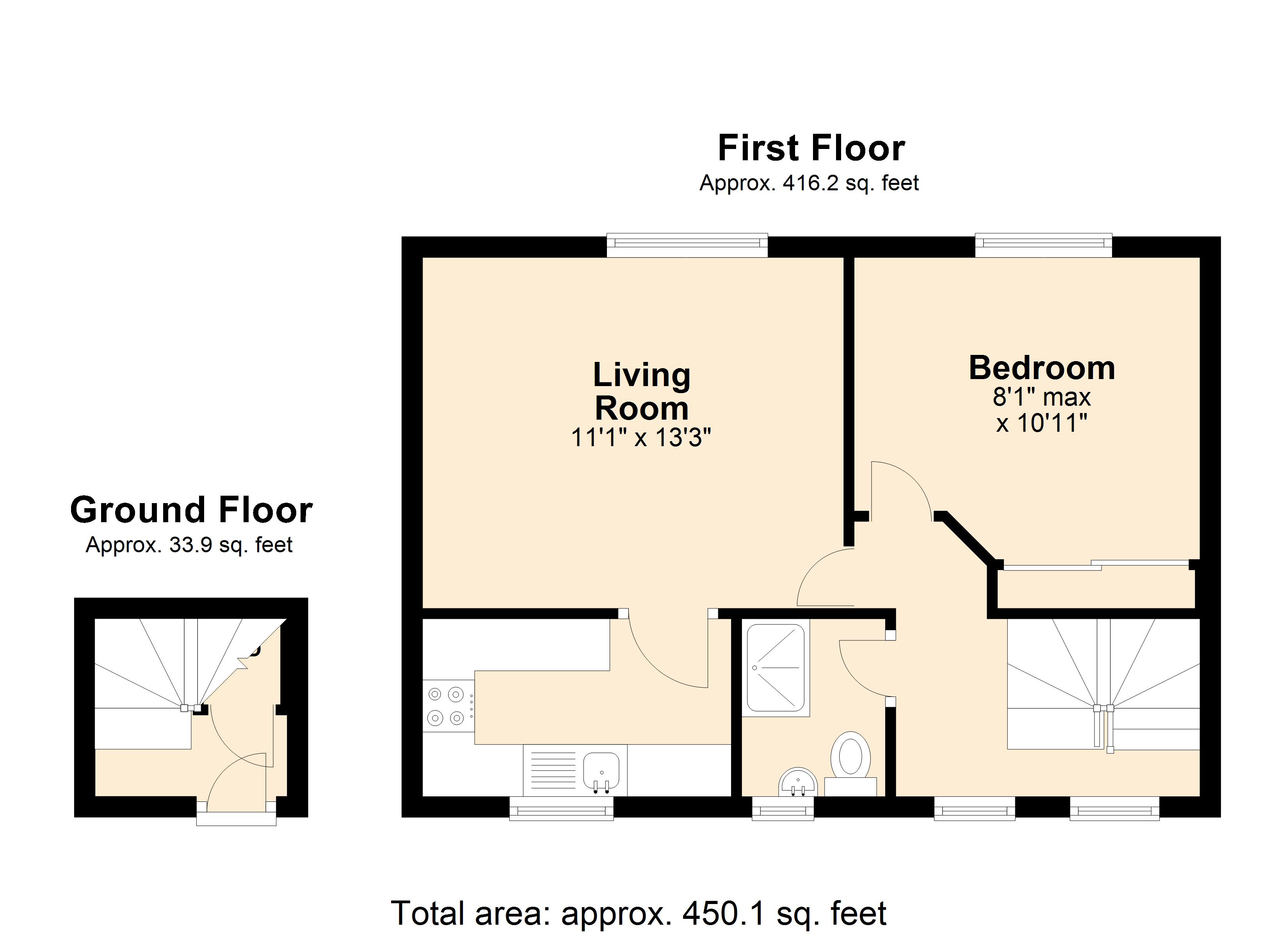 Accommodation comprises entrance hall with storage cupboard, staircase up to landing, modern shower room, double bedroom with built in wardrobes, spacious living room and kitchen with appliances.