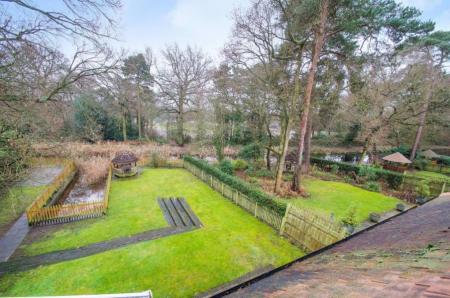 Presenting a stunning five-bedroom, four-bathroom detached house located within a private gated development. This impressive property features a detached double garage and a lovely rear garden overlooking the peaceful Basingstoke Canal. The ground floor offers an inviting entrance hall with a cloakroom, leading to a modern fitted kitchen, family room, and conservatory with access to the garden. Additional reception rooms and a utility room provide versatile living spaces. Upstairs, you'll find two double bedrooms with en-suites, two more bedrooms, and a family bathroom. The second floor hosts the luxurious principal bedroom with its own en-suite bathroom. Outside, a detached double garage and driveway offer parking space for multiple vehicles. The rear garden provides a tranquil outdoor retreat.