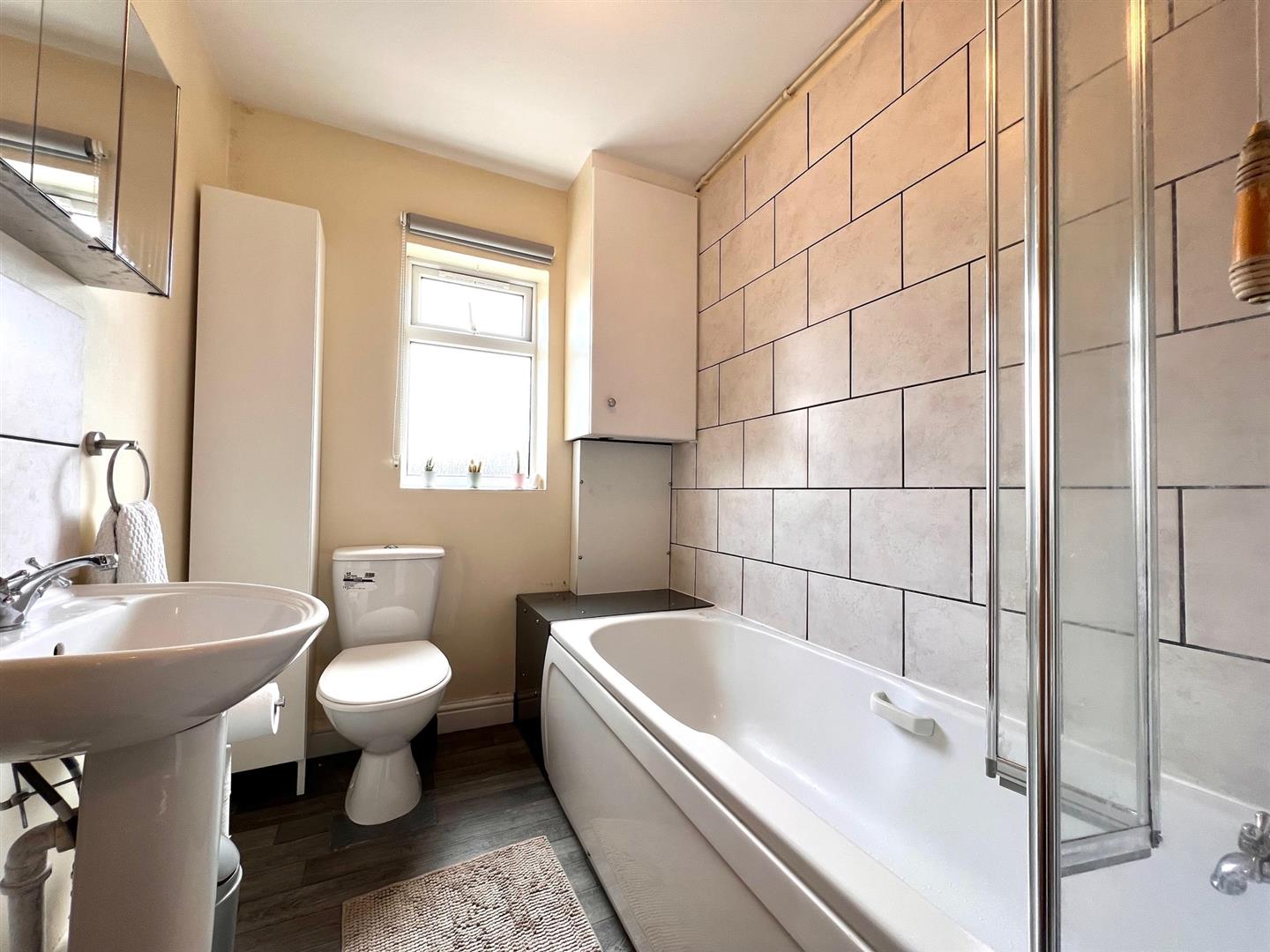 As you proceed up the stairs are two large double bedrooms and upstairs bathroom with bath and shower.