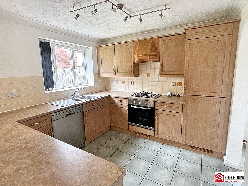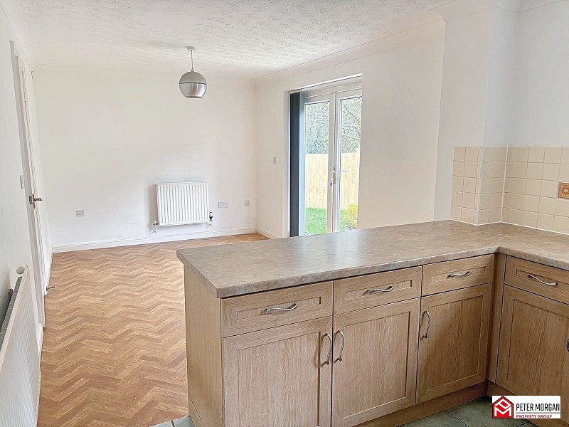 Carpet and tiles with double doors to rear garden. Integrated oven, cooker good and fridge freezer.
