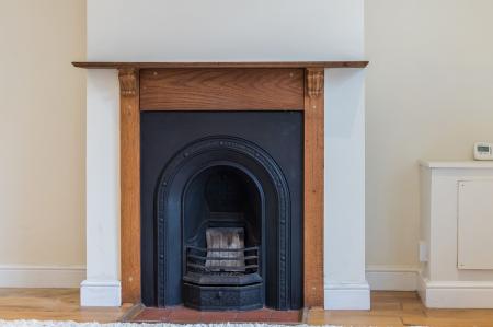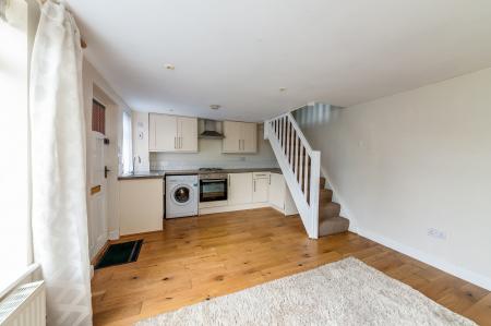 - Entrance opening to refitted kitchen and open plan sitting room with solid oak wood flooring and attractive open fireplace