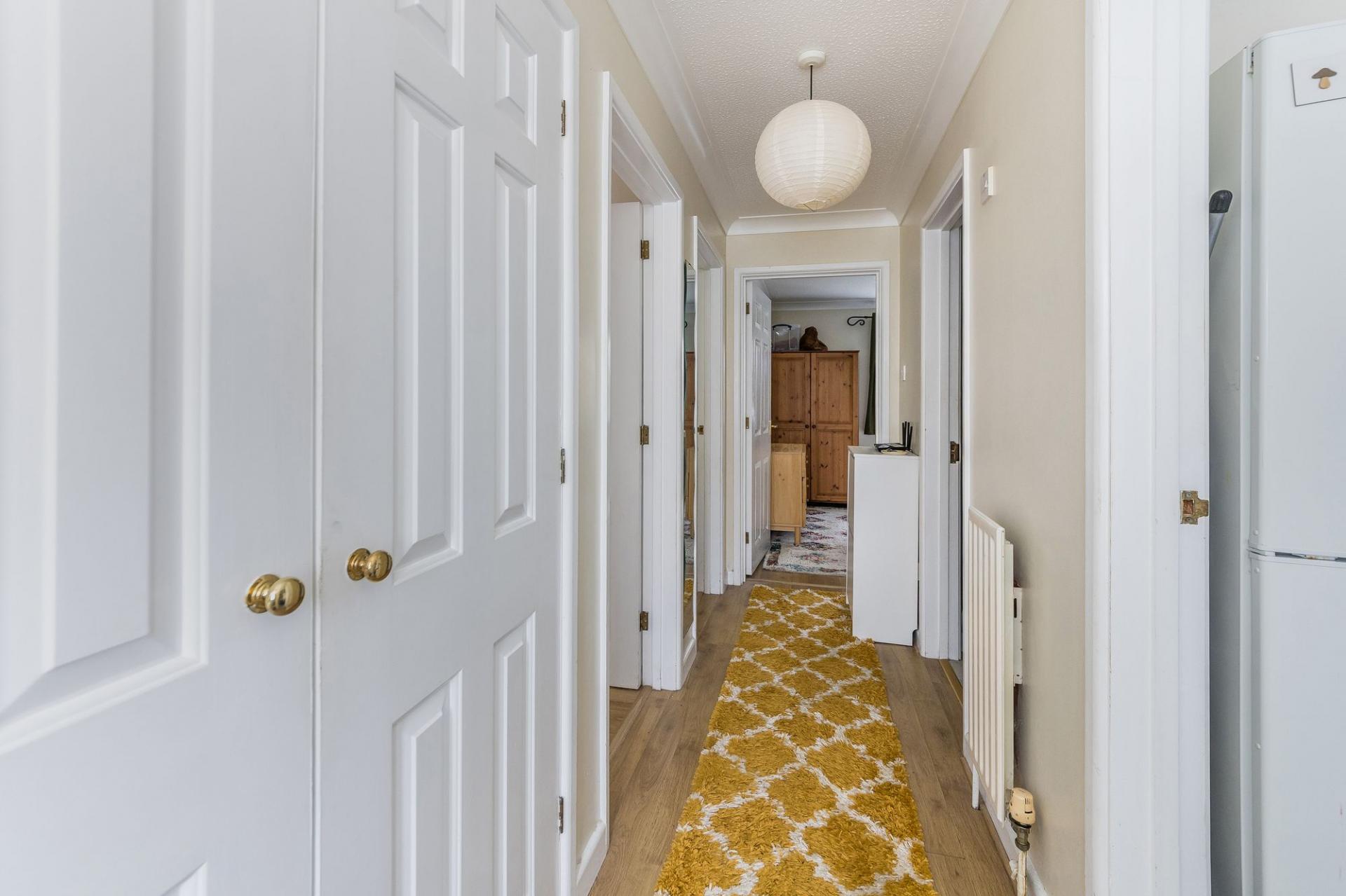 - Secure private entrance leading to hall with tall storage cupboard