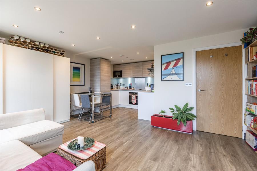 A 1 double bedroom third floor apartment (556 sq ft) with allocated parking, conveniently situated in the heart of Addlestone and within a short walk of the mainline train station. The accommodation features a stylish, open plan kitchen/living room with integrated appliances and a balcony overlooking well maintained communal grounds. The property also provides a generous double bedroom, a modern bathroom and additional storage space. Accessed via a communal entrance, this property is ideal for a first time buyer or investor and an early viewing is highly recommended.