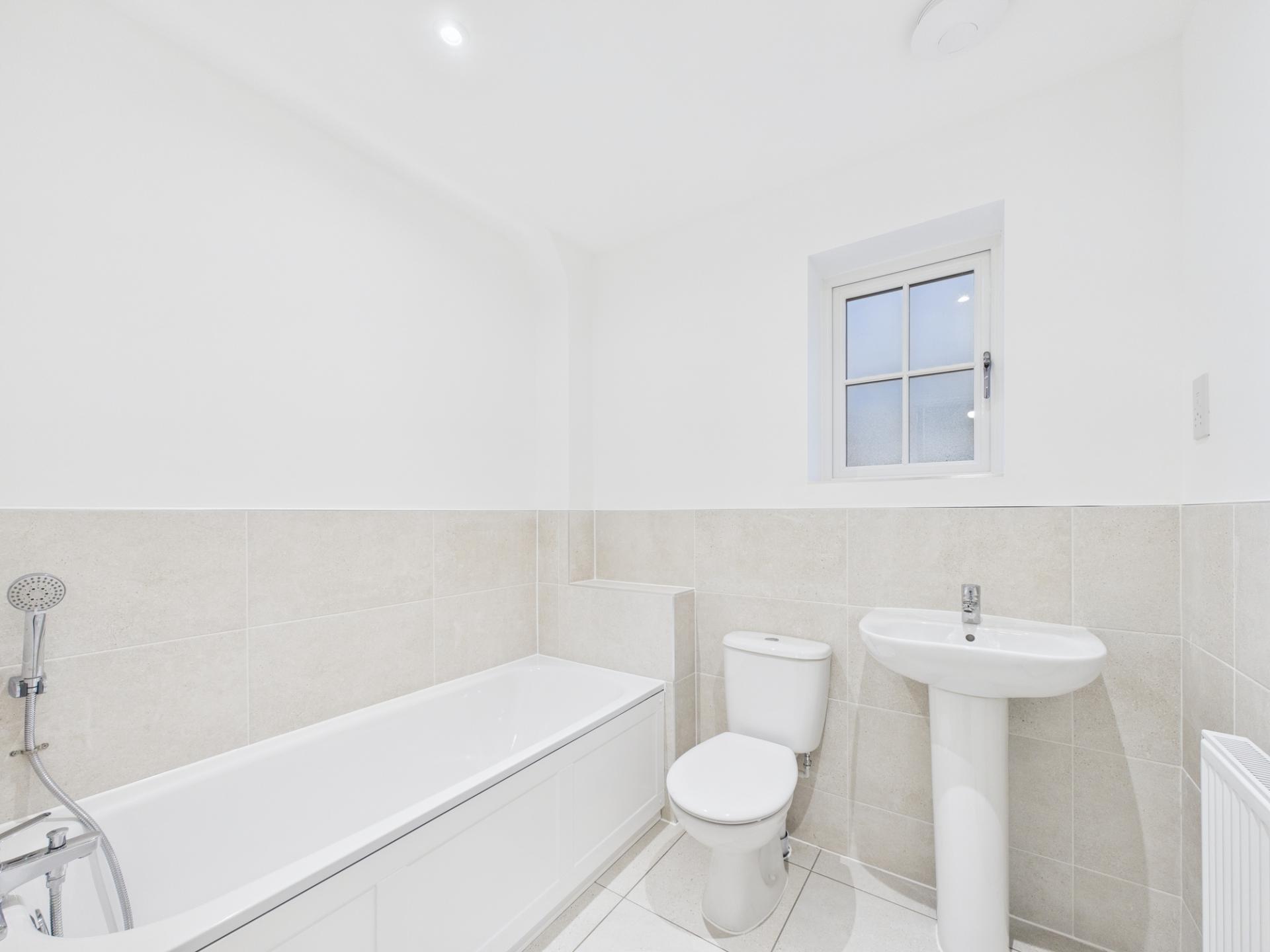 Fitted with a three-piece suite comprising panelled bath, WC with low level cistern and wash hand basin. Heated towel rail. Obscure UPVC window to front elevation.