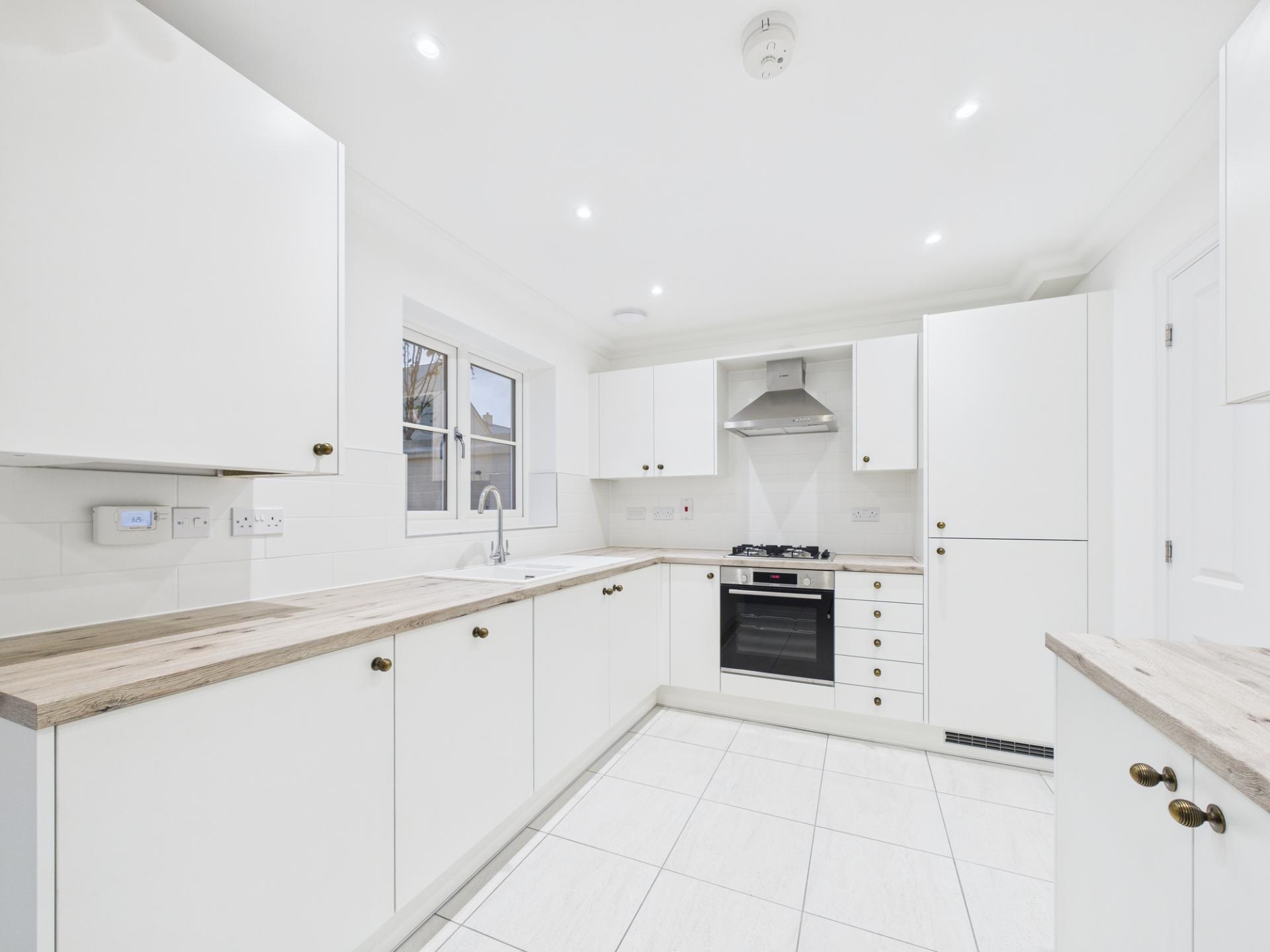 Fitted with a range of wall mounted and base units with work surface over. Integrated electric oven. Four-ring gas hob with cooker extractor over. Integrated fridge/freezer. Integrated dishwasher. Sink and drainer unit. Integrated washing machine. LVT flooring. UPVC window to rear elevation. UPVC French doors to rear elevation leading in to garden.