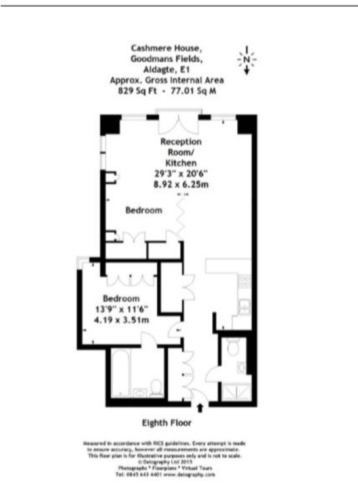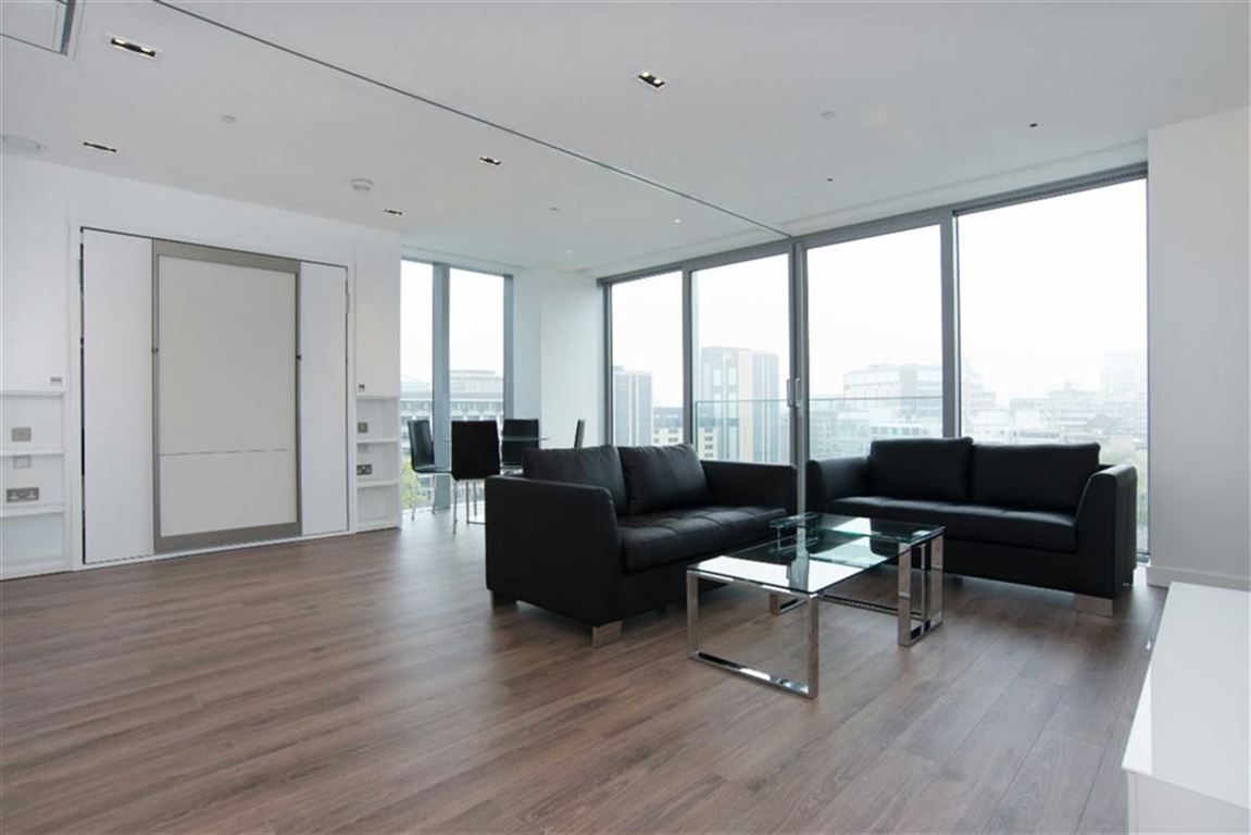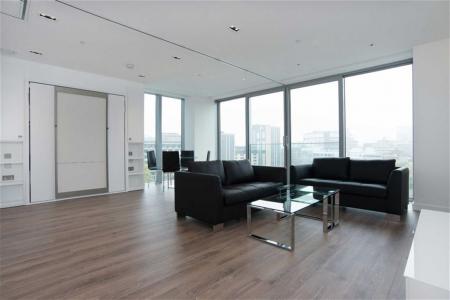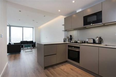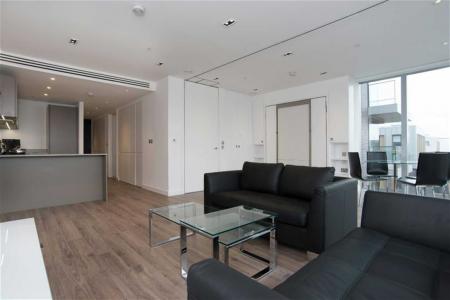 A two bedroom, two bathroom apartment on the 8th floor of Cashmere House; within the modern Goodman's Fields development. This designer furnished apartment includes a spacious open plan living and dining area with dual-aspect views, fitted kitchen with integrated appliances, fitted fold-away bed with a partition in living area, floor-to-ceiling windows, wood flooring, en suite bathroom and a stylish shower room. Residents will also have access to a 24 hour concierge service, private cinema, communal gardens, business lounge, residents' gymnasium and a spa.