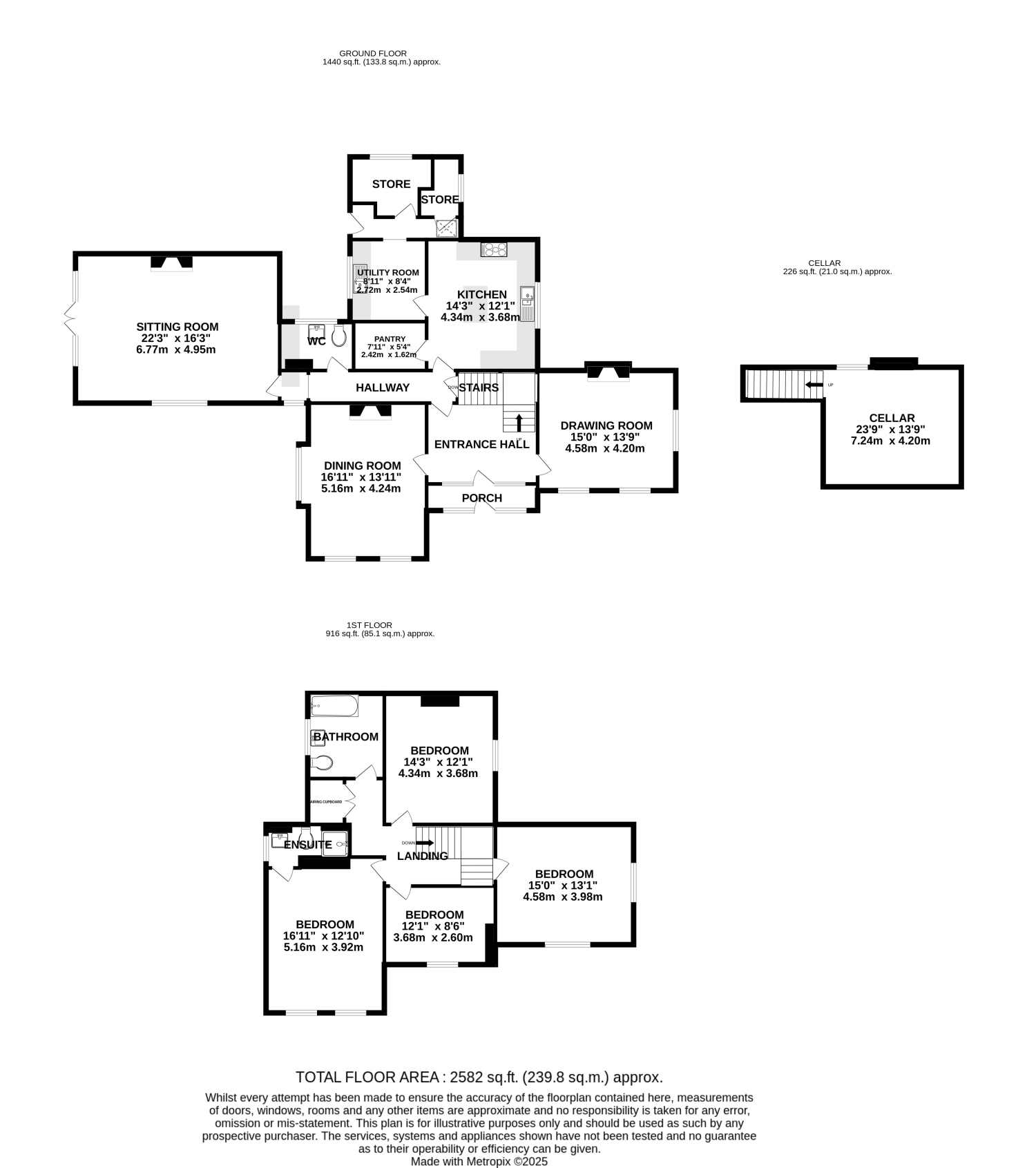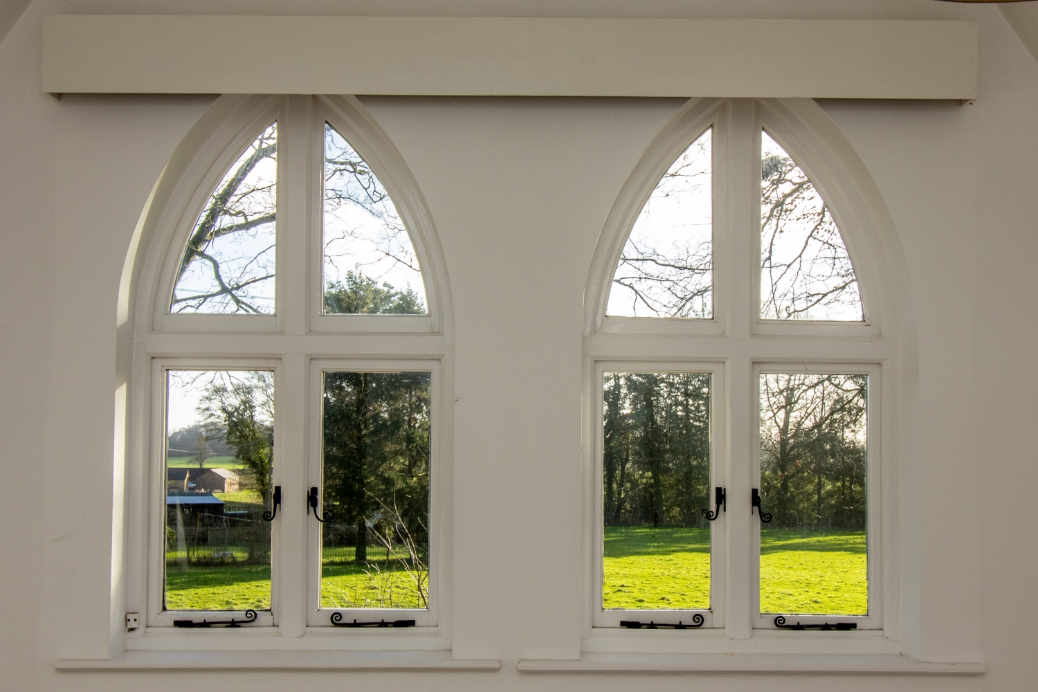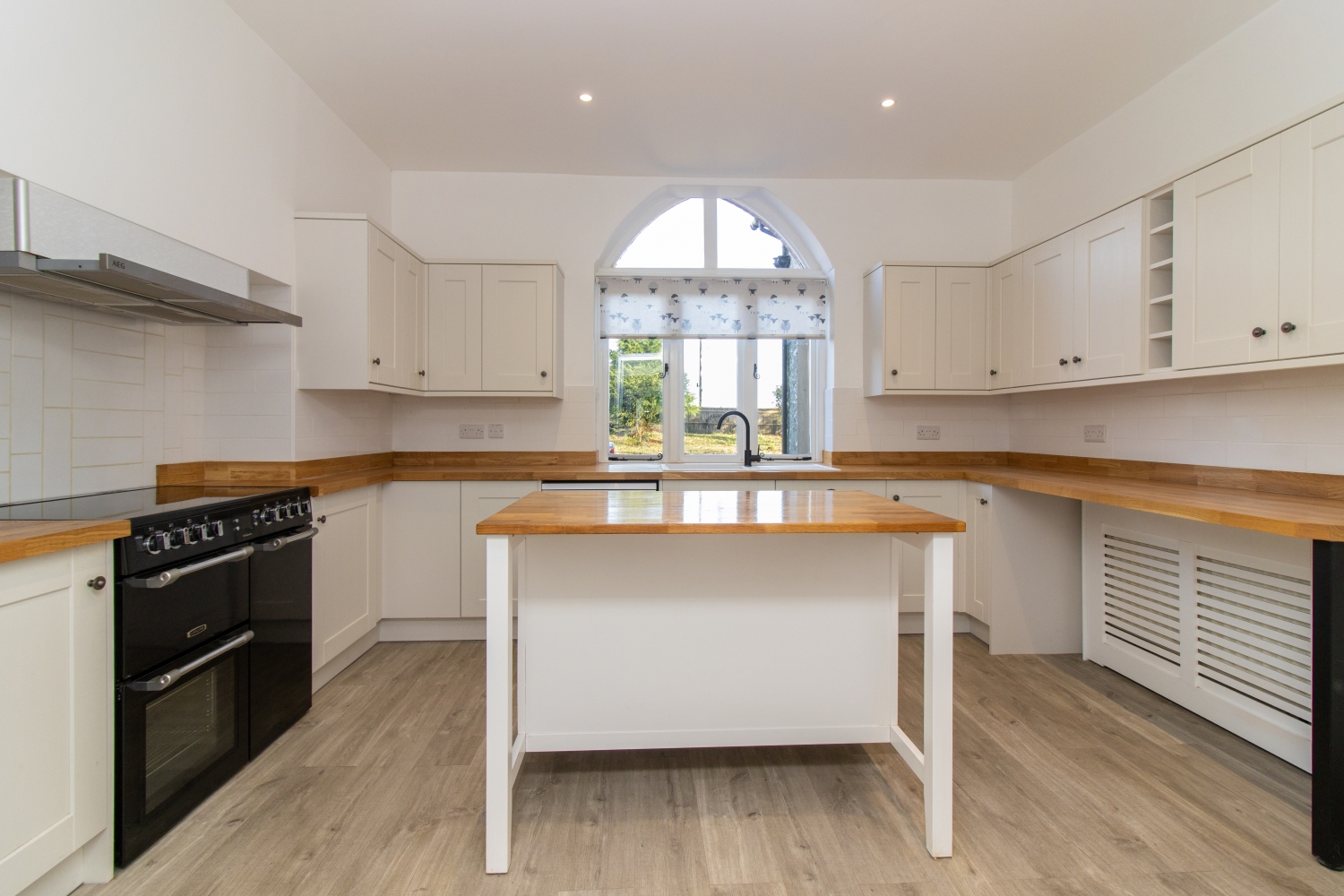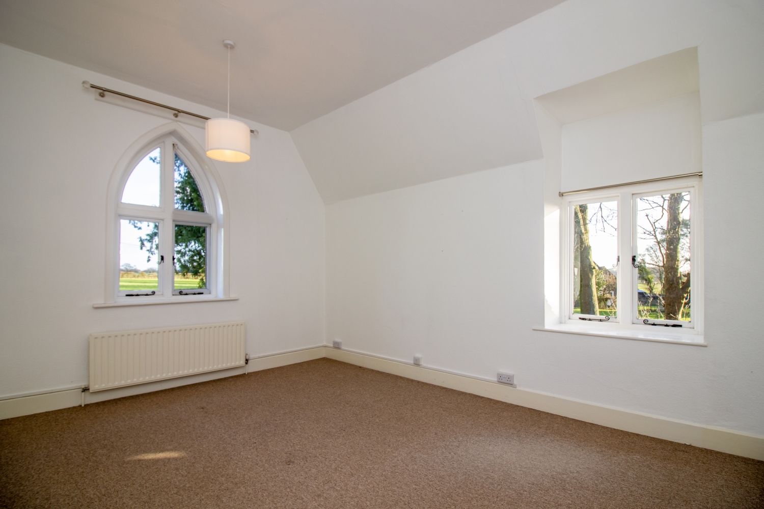 Upstairs, there are four well-appointed bedrooms, including a light-filled principal suite with views over the surrounding countryside. The bathrooms are stylishly finished, maintaining the home's traditional character while offering contemporary convenience.