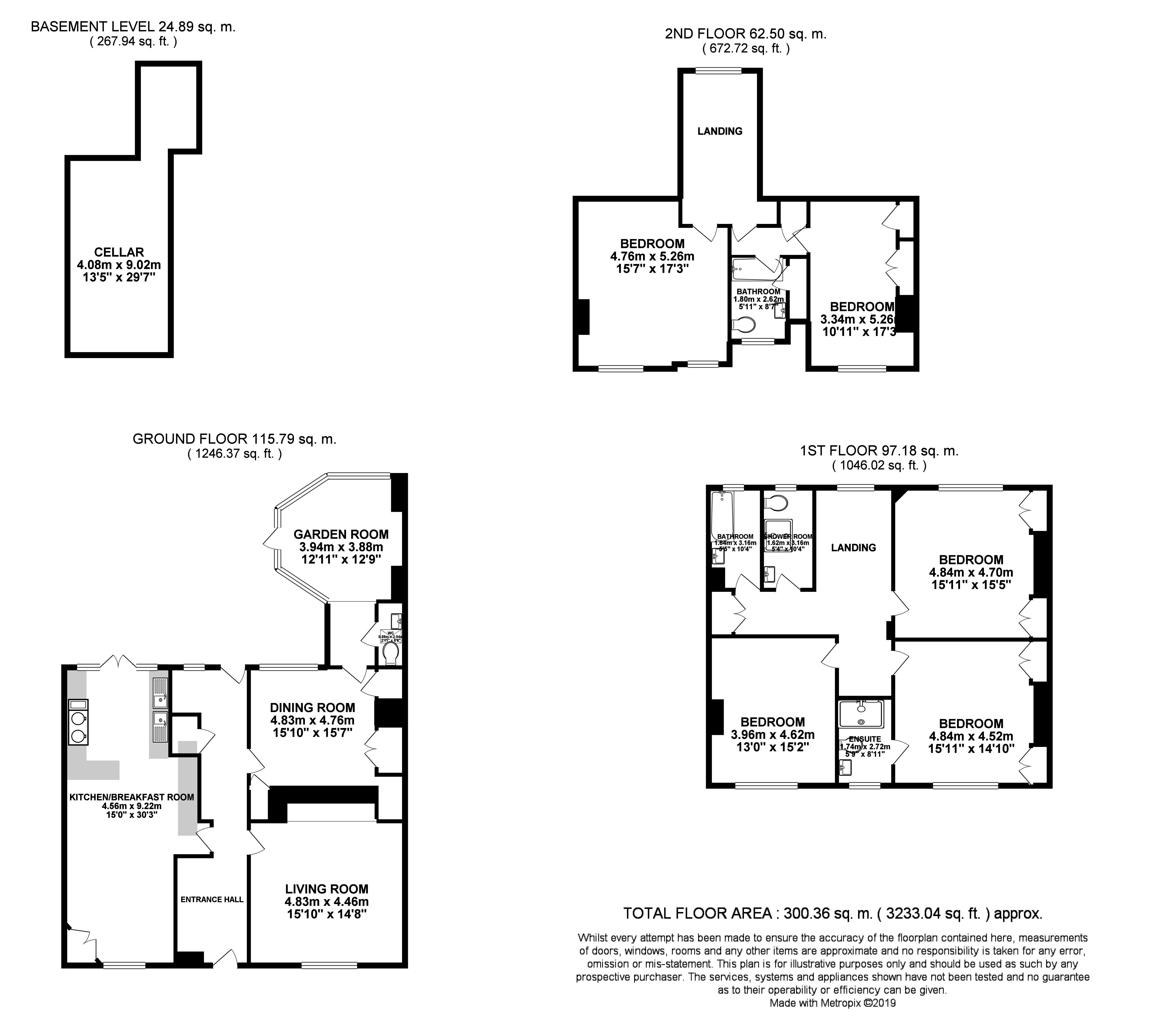 On the first floor there are three large bedrooms, one of which has an en-suite bathroom and a further two full bathrooms.