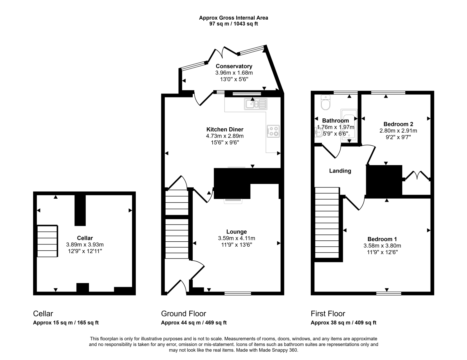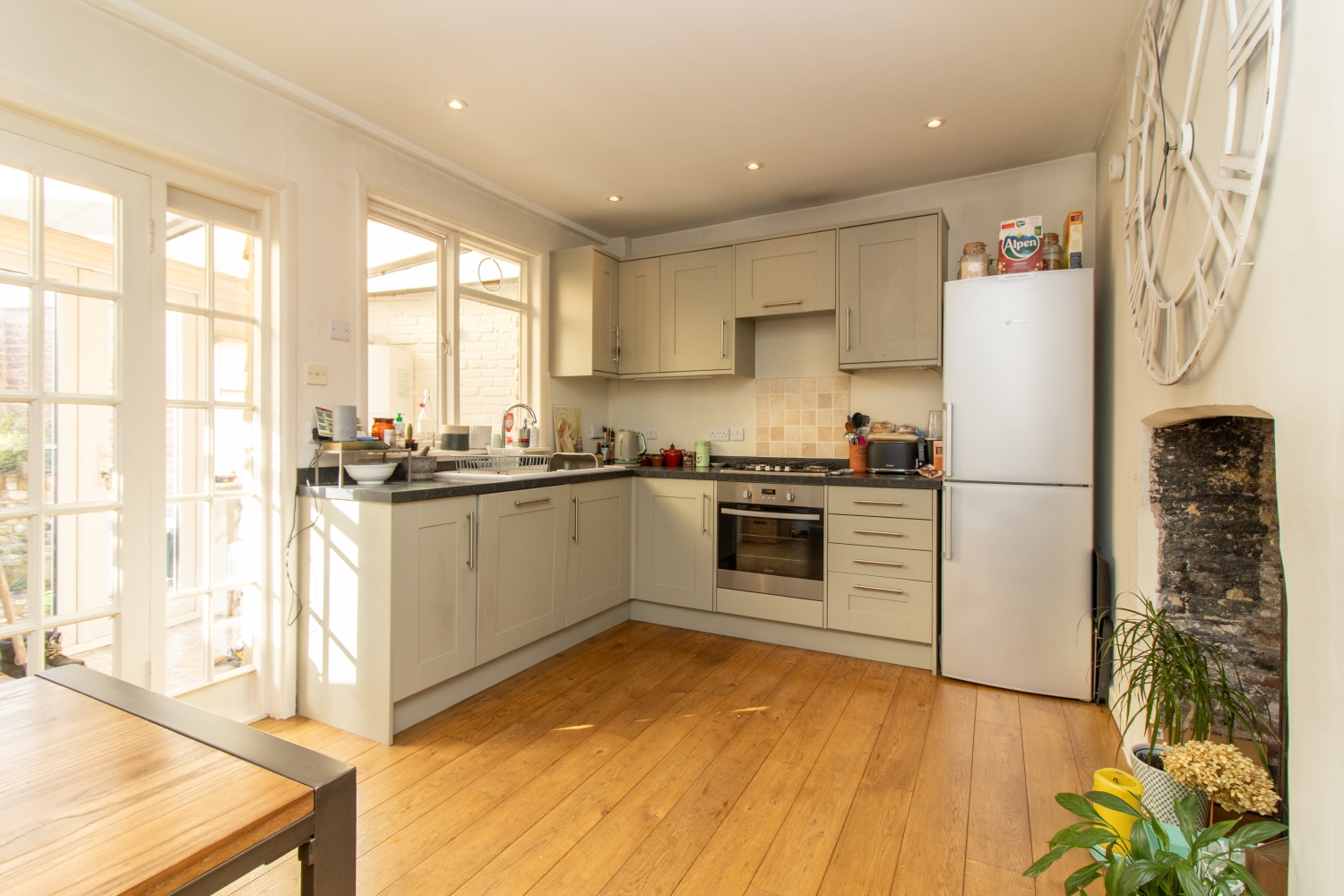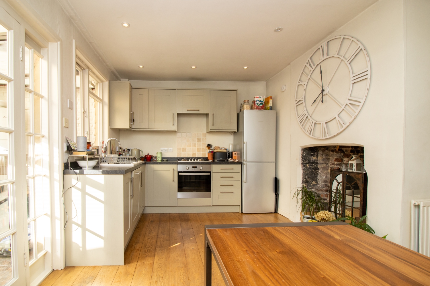 This delightful character property has a sitting room, with feature decorative fireplace, a good-sized kitchen with dining area and a small conservatory opening to the southerly facing garden. There is also a useful cellar.