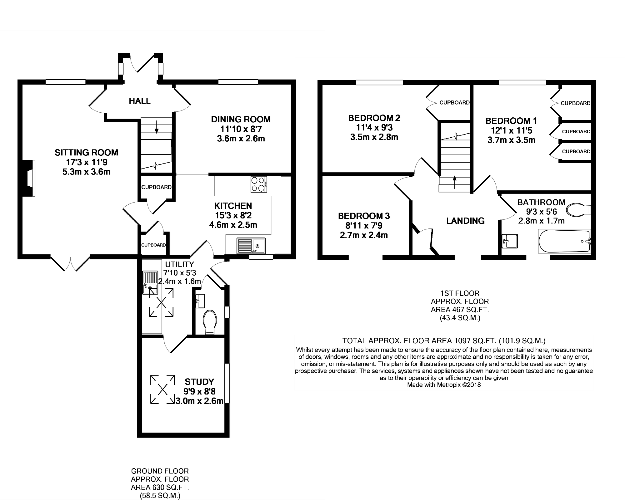 The property is approached via a path to the front door, with parking to the left and a samll front garden. Upon entering, there is a small entrance hall with stairs to the first floor. To the left is the dining room, with archway through to the kitchen. This has a modern range of base and eye-level units. There is a door through to the adjacent utility room with separate WC. There is a further door to the study.