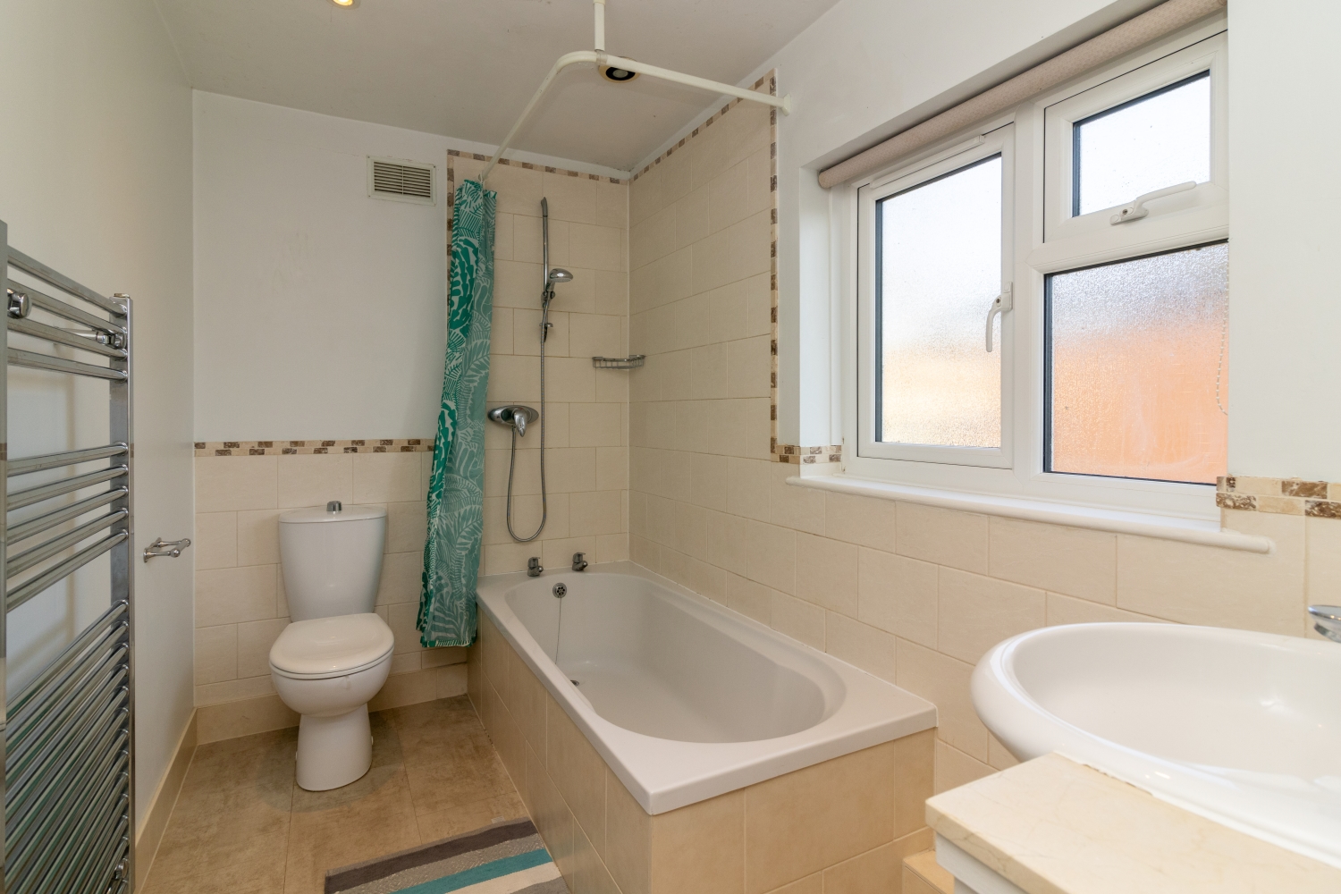 Upstairs, there is the master bedroom with built-in wardrobes, two further bedrooms and the family bathroom.