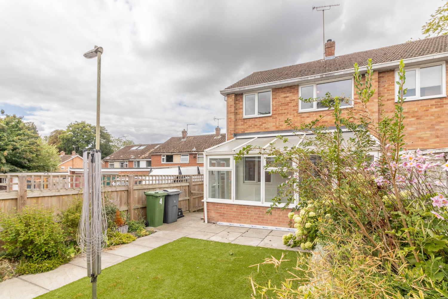 To the rear is a garden with artificial lawn and mature borders. There is a single garage with side access from the garden.