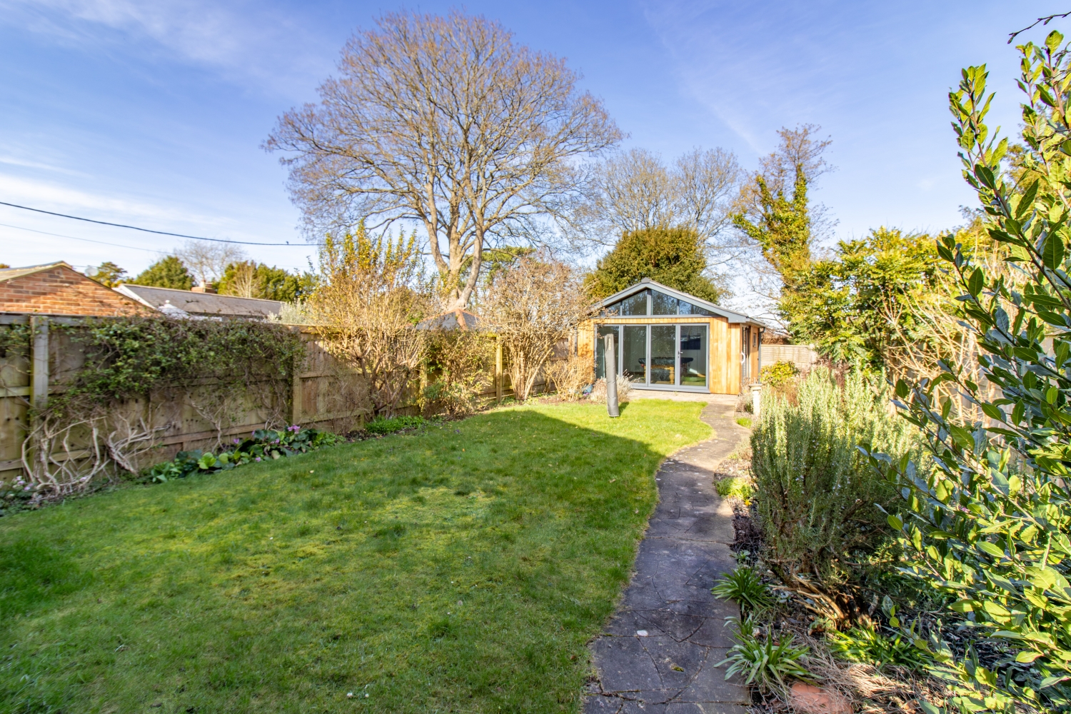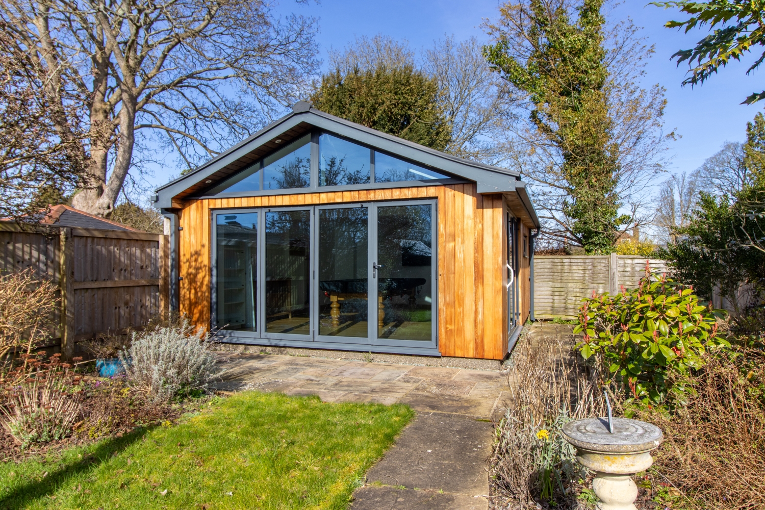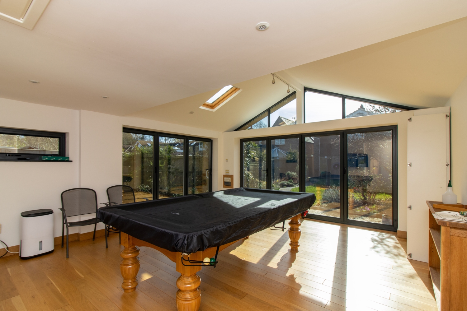 To the front of the property is an off road parking space, with EV charging point. To the rear is an enclosed garden, with impressive studio featuring bi-fold doors and snooker table.