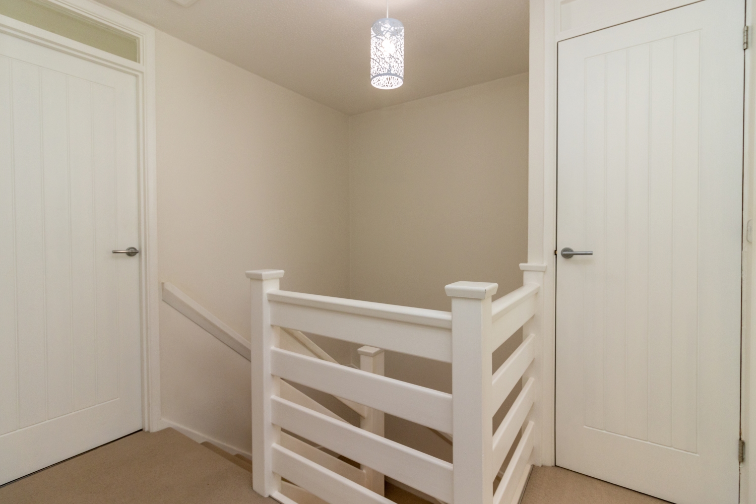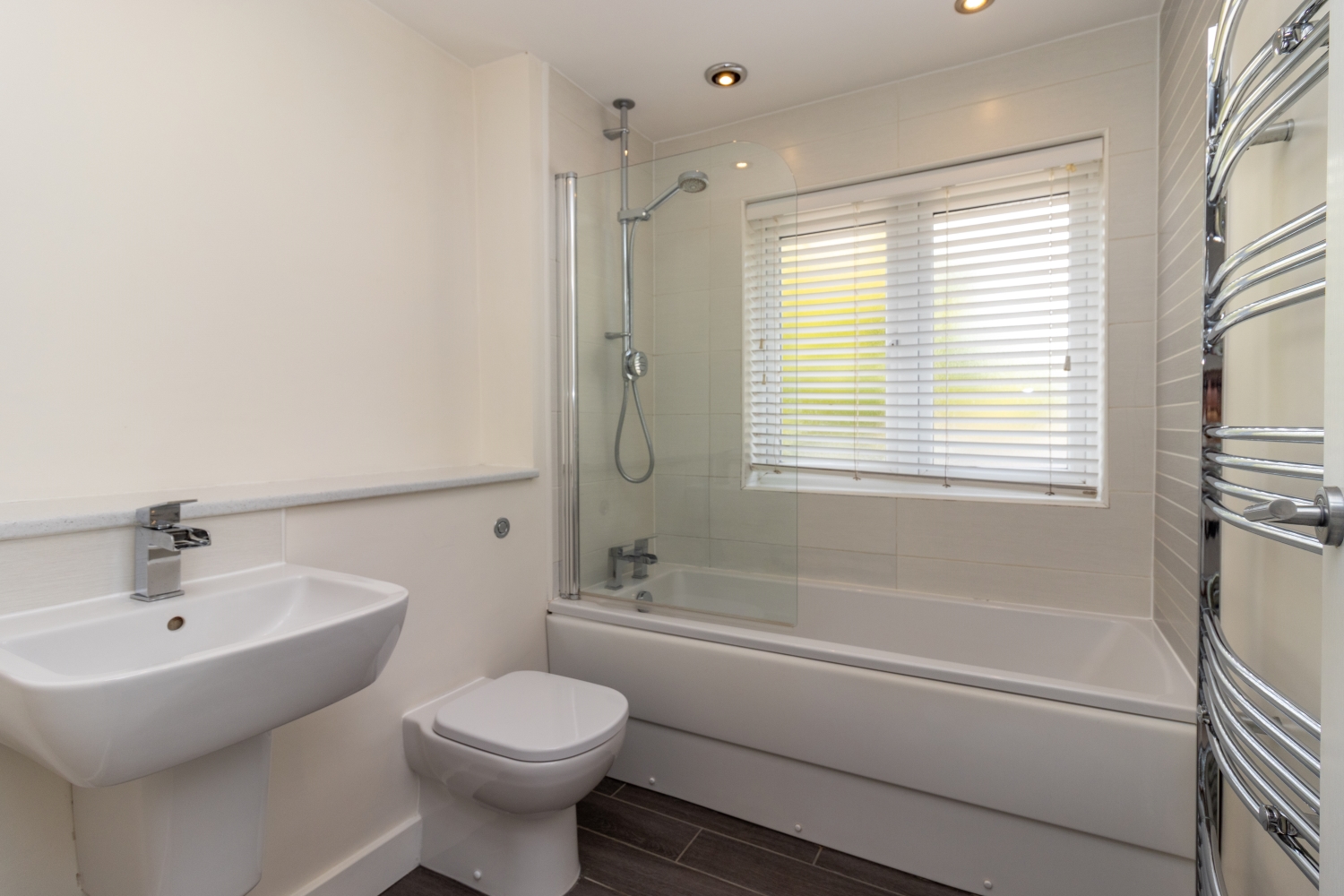 On the first floor landing, there are three double bedrooms, one of which has twin built-in double wardrobes. There is a good size white bathroom suite. The south-facing rear garden is mainly laid to lawn, with a patio area adjoining the rear of the house and rear access gate. The garden is enclosed by fencing. There is driveway parking to the front.