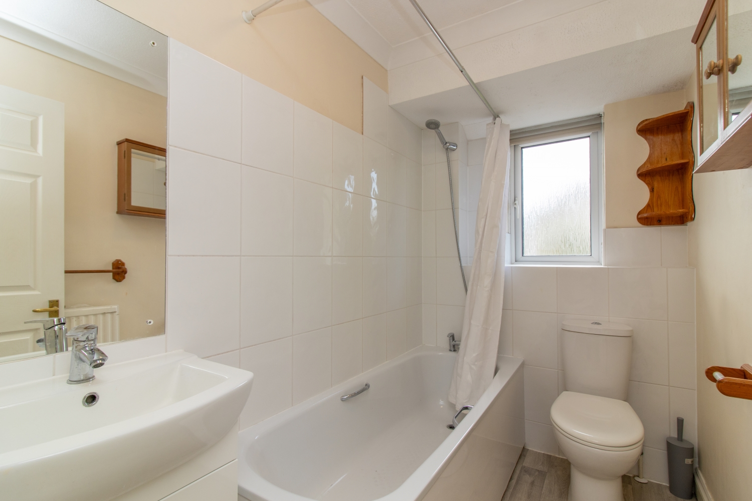 Upstairs, there is the master bedroom, the second bedroom and the bathroom, which features a shower over the bath.