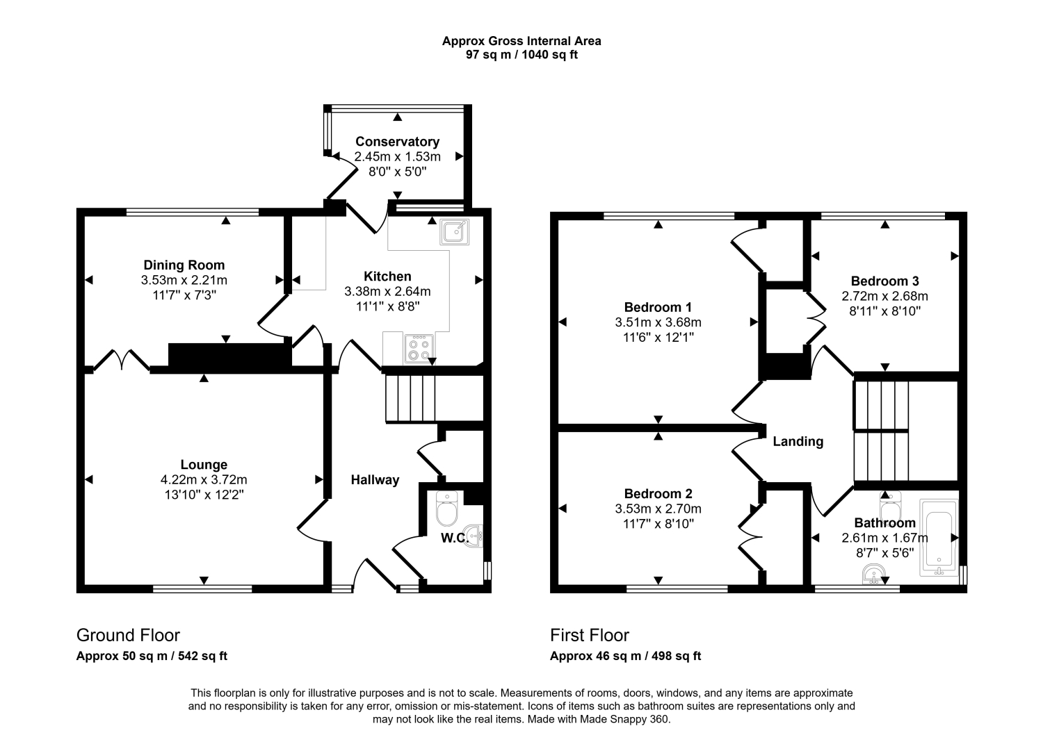 From the path, the front door opens into a welcoming entrance hall. There is a downstairs cloakroom and a sitting room with double doors opening into the dining room. A door then leads through to the modern kitchen, which features a range of base and eye-level units and a contrastign worktop. There is a small conservatory that leads out to the garden.